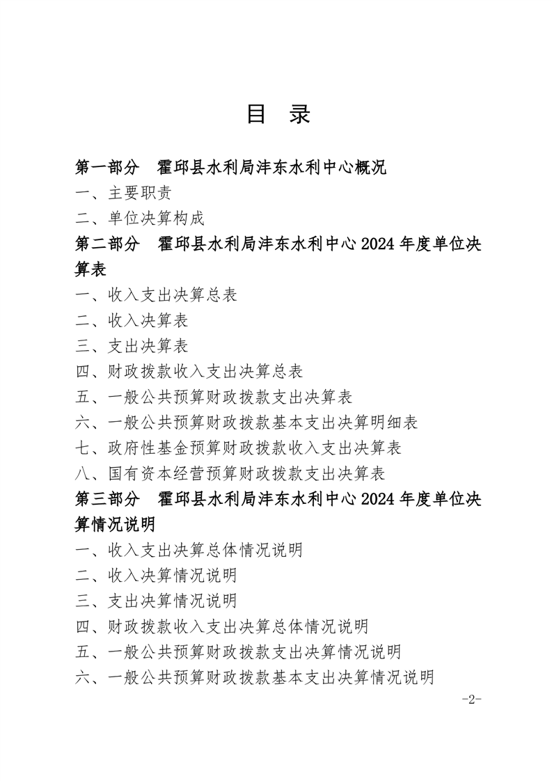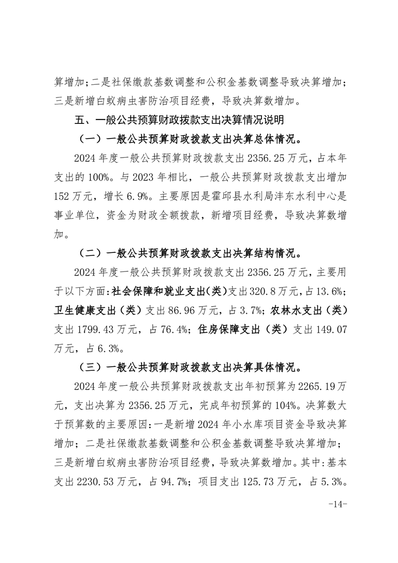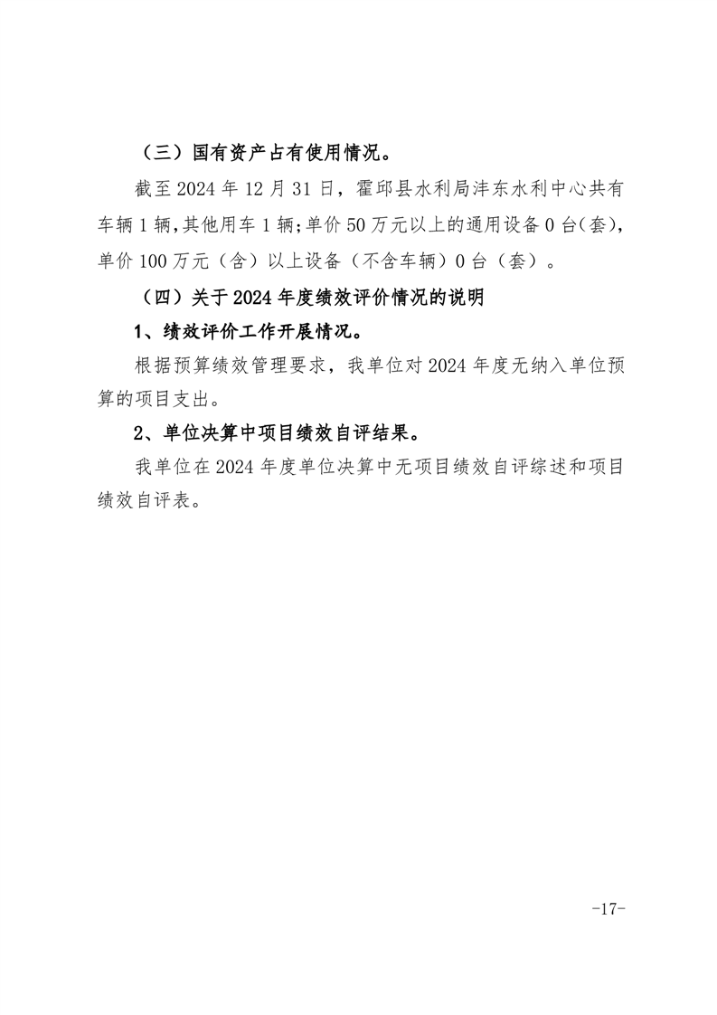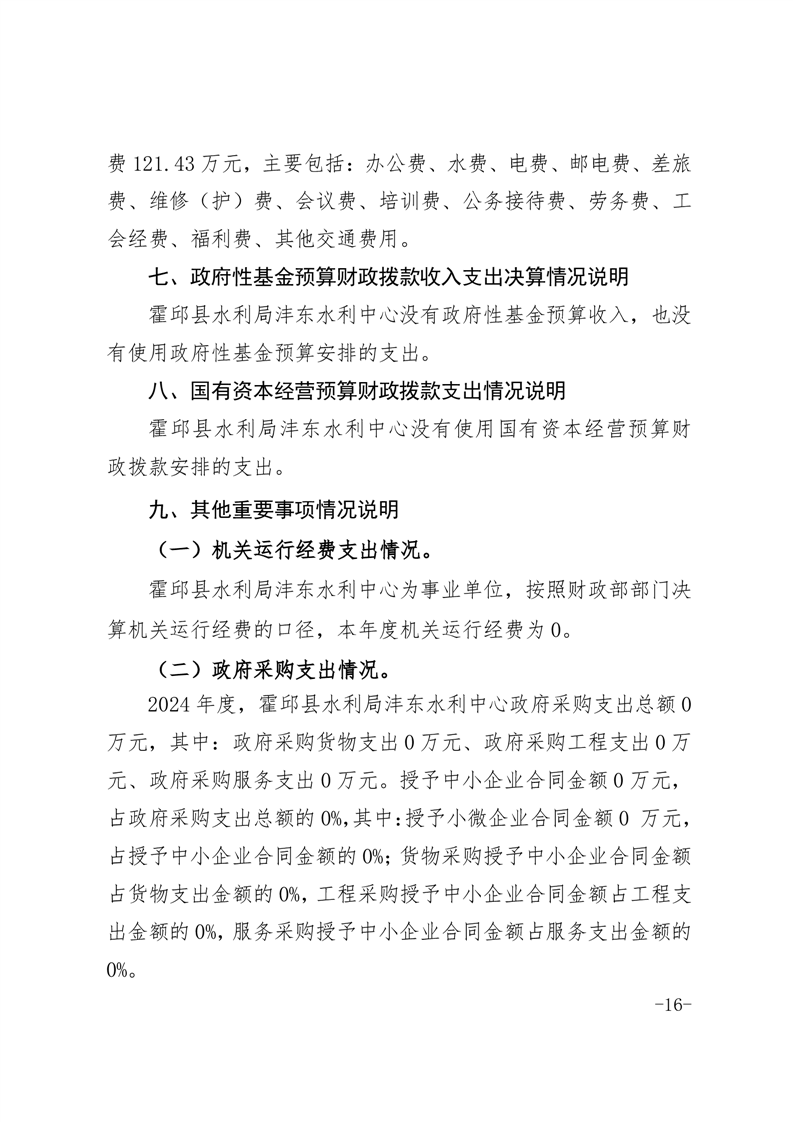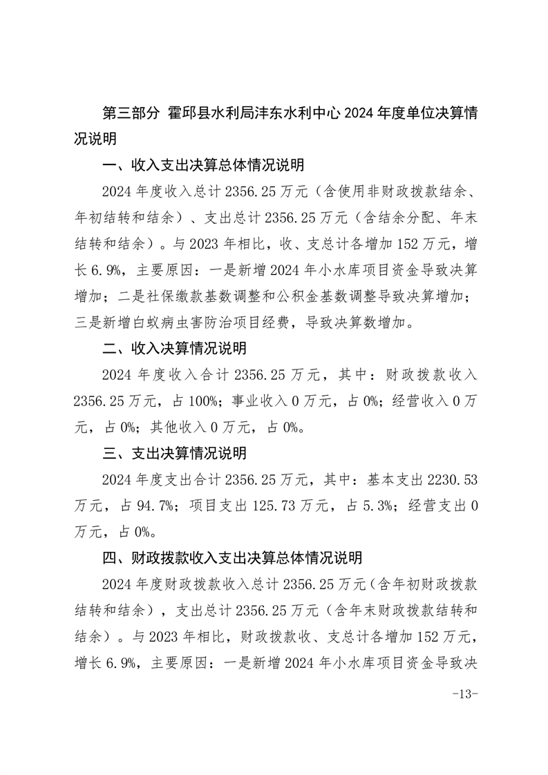 霍邱县水利局沣东水利中心2024年单位决算公开
