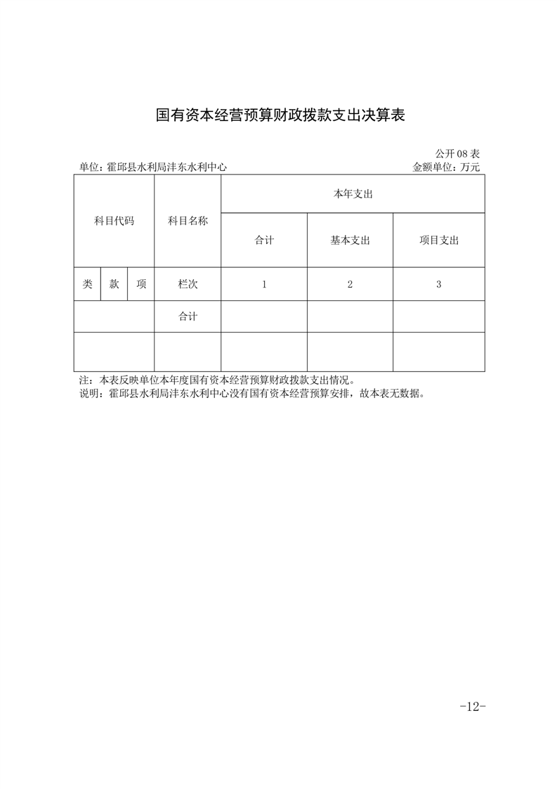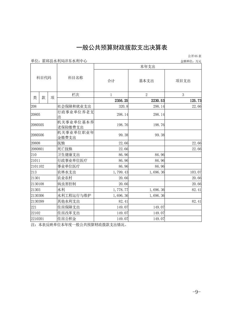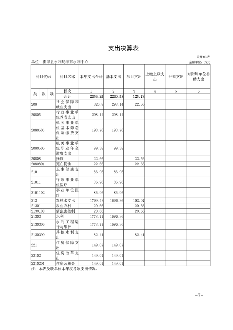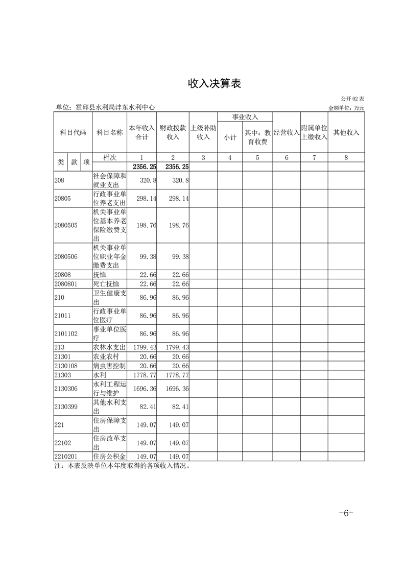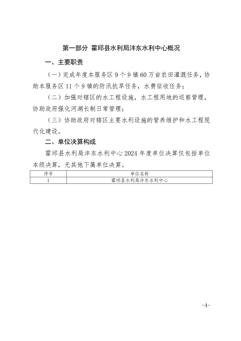 霍邱县水利局沣东水利中心2024年单位决算公开