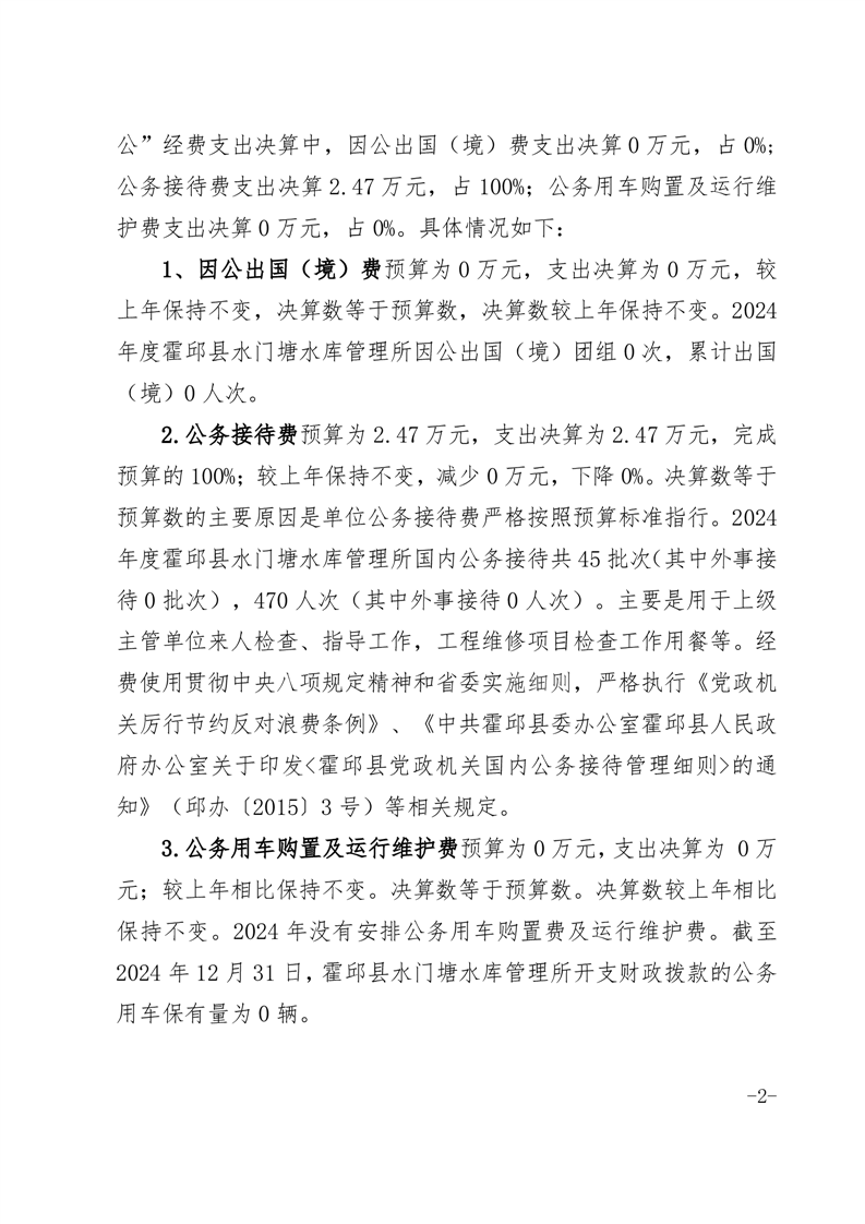 霍邱县水门塘水库管理所2024年度一般公共预算财政拨款“三公”经费支出决算决算公开