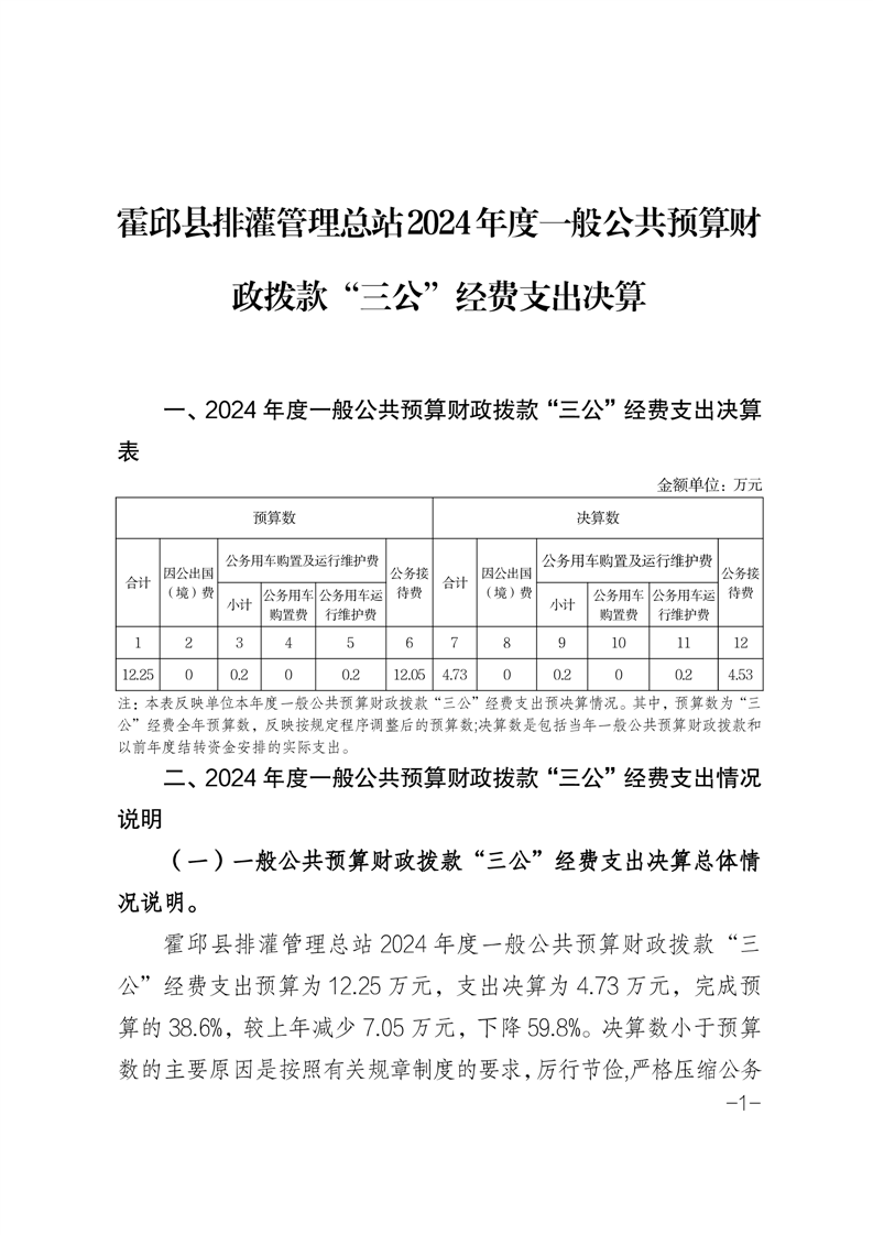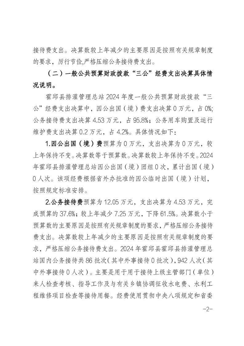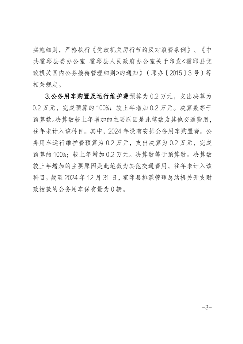 霍邱县排灌管理总站2024年度一般公共预算安排“三公”经费支出决算