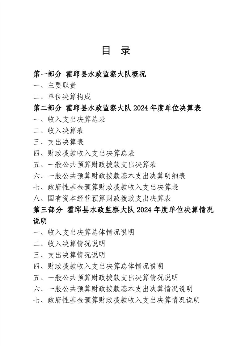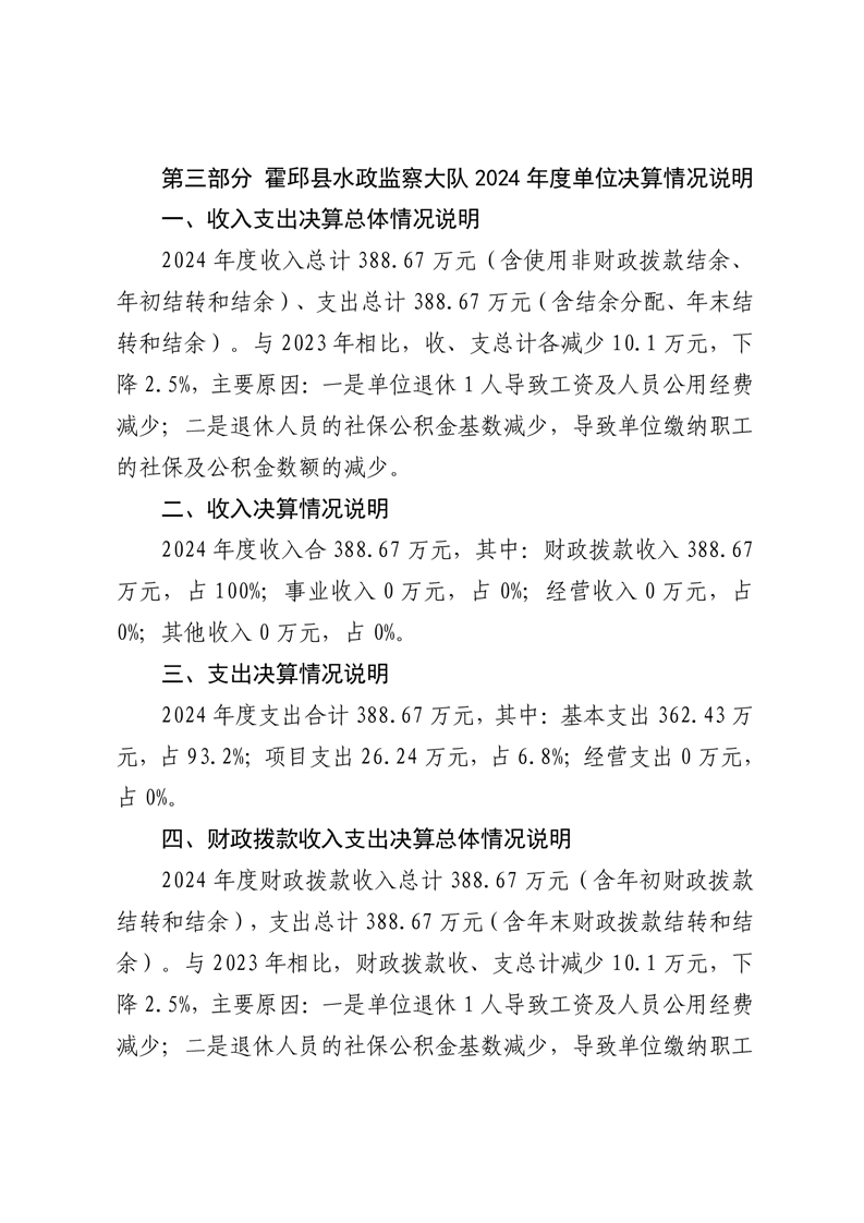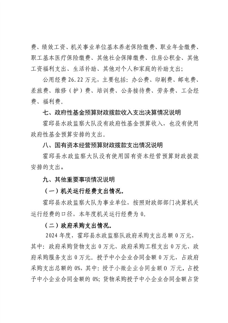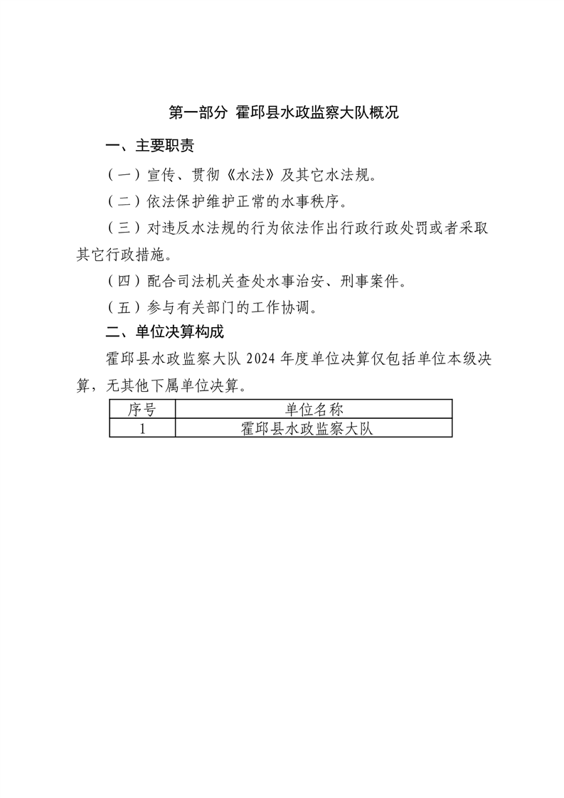 霍邱县水政监察大队2024年度单位决算