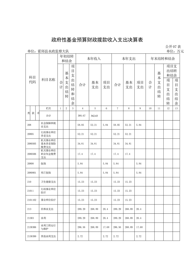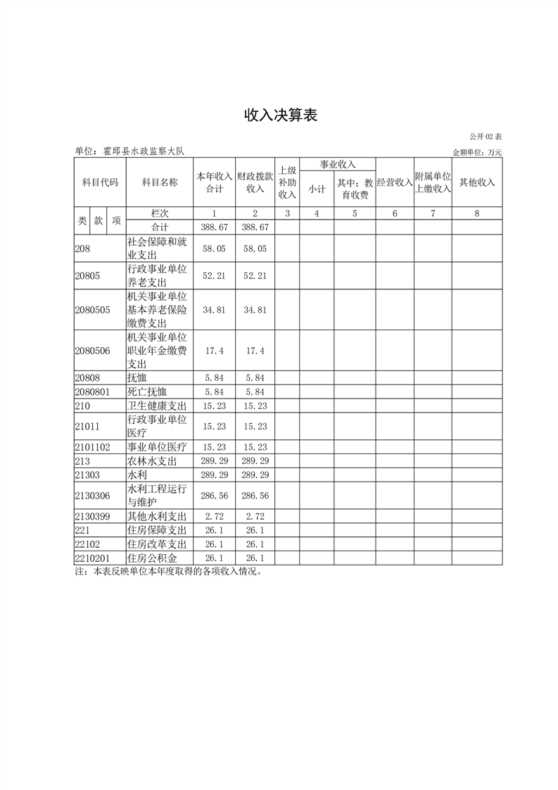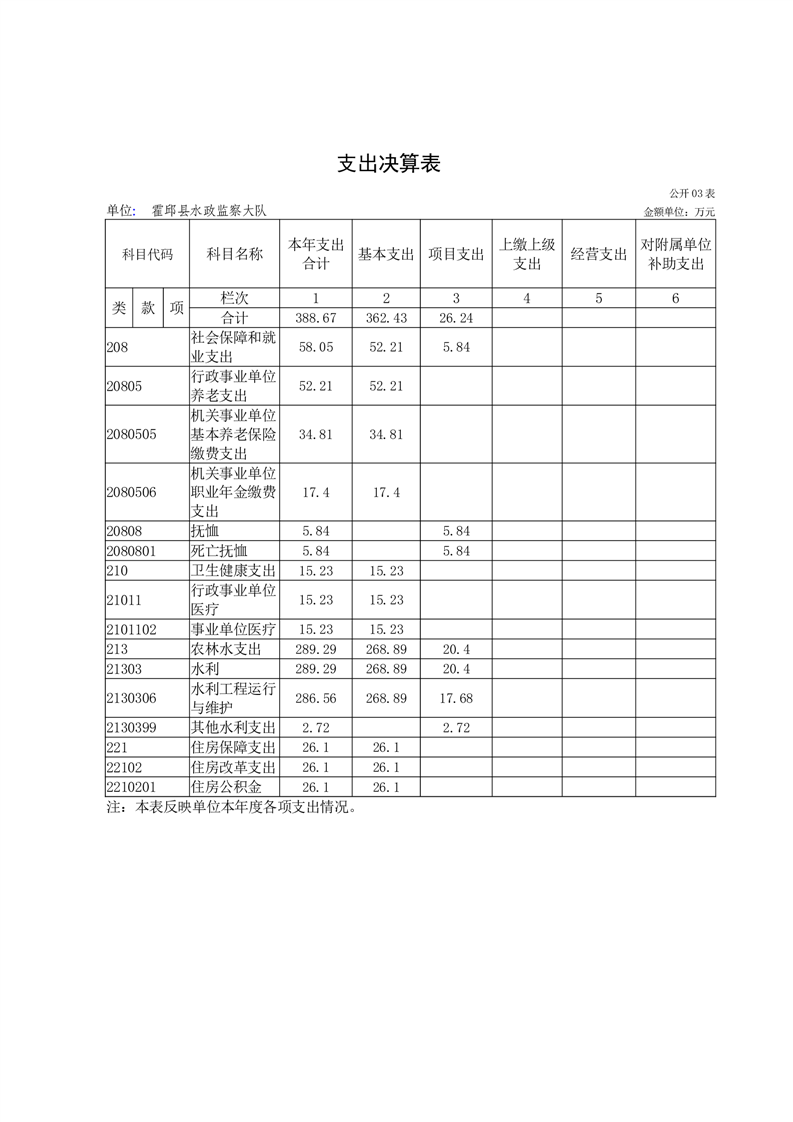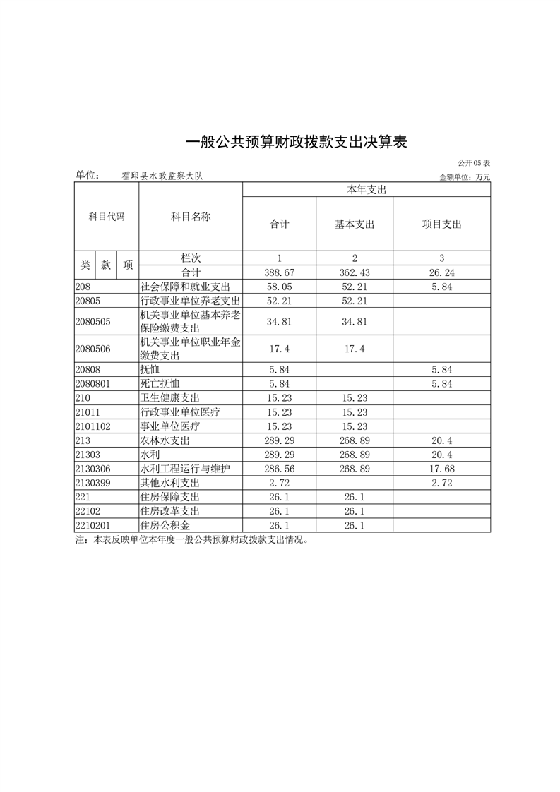 霍邱县水政监察大队2024年度单位决算