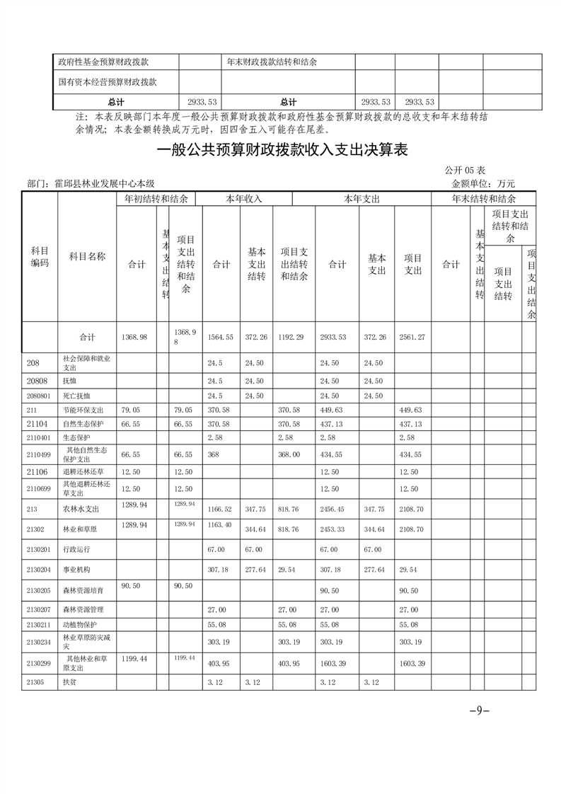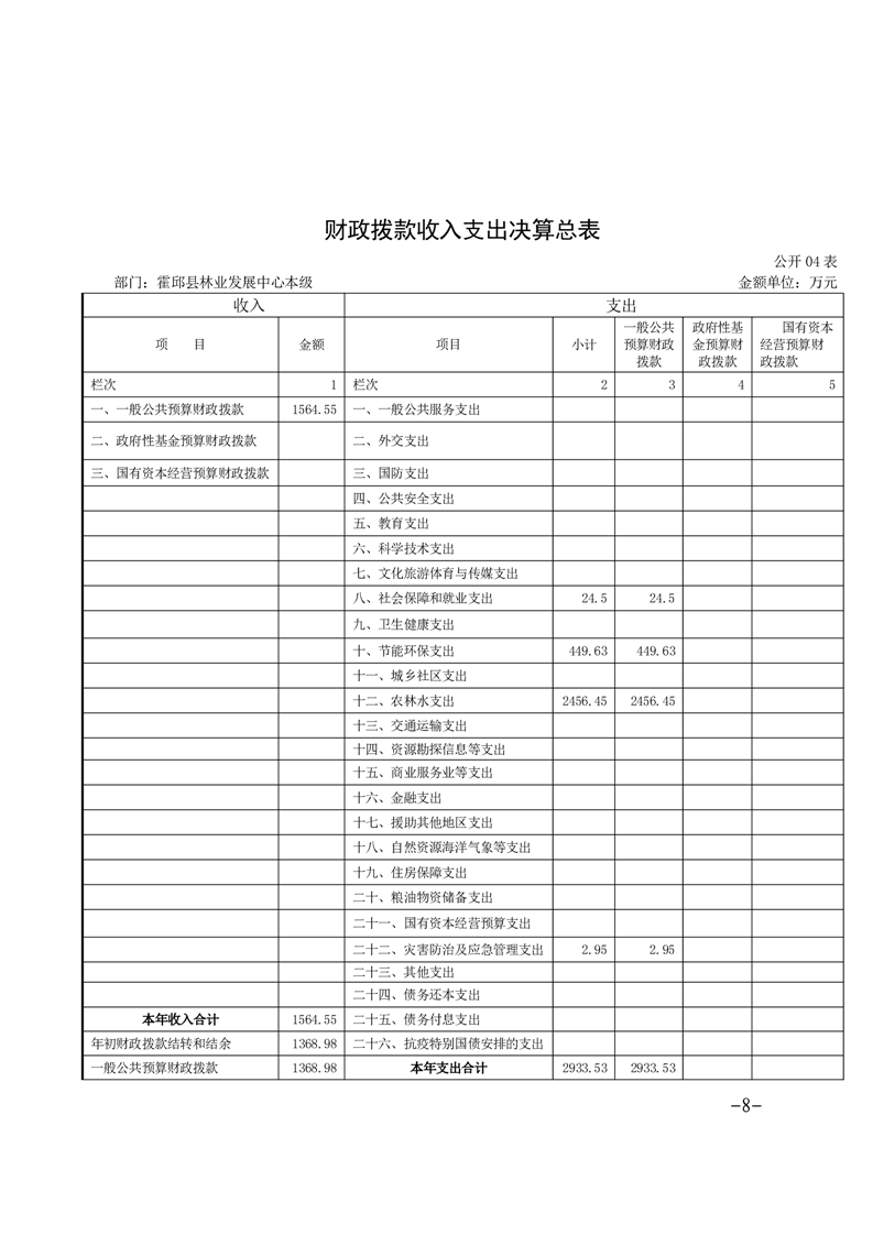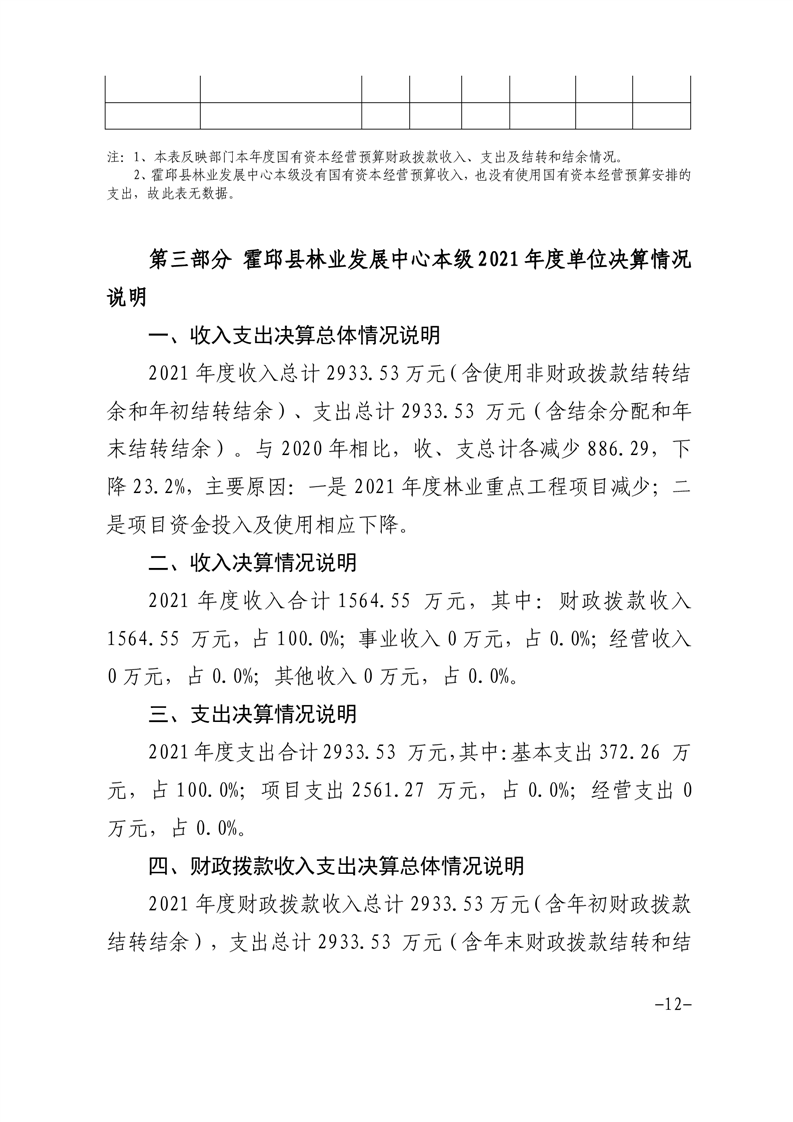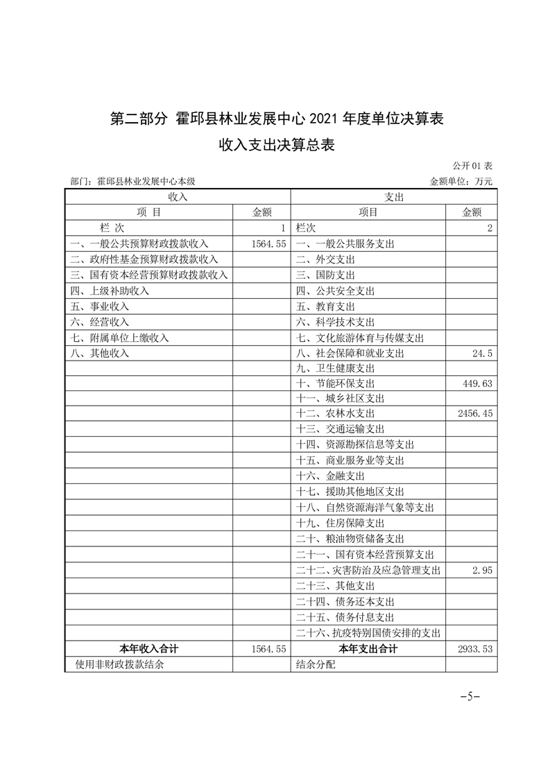 霍邱县林业发展中心本级2021年度单位决算