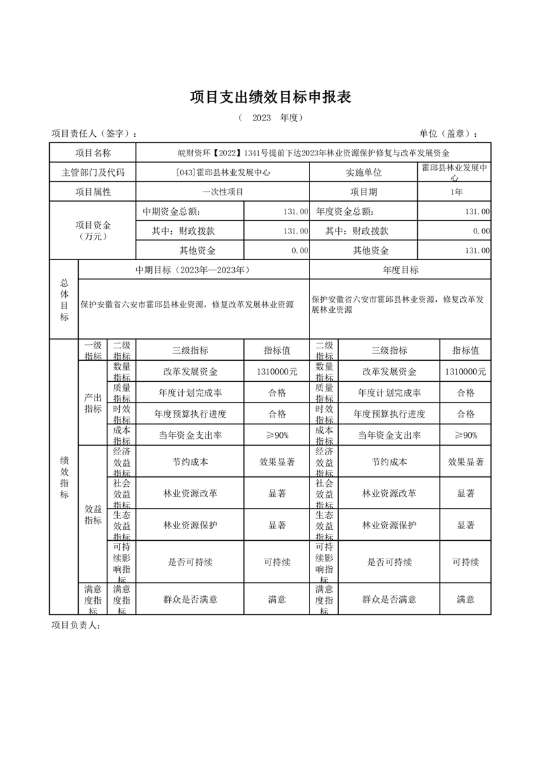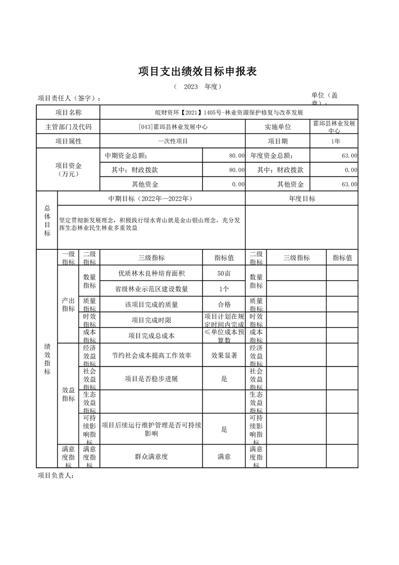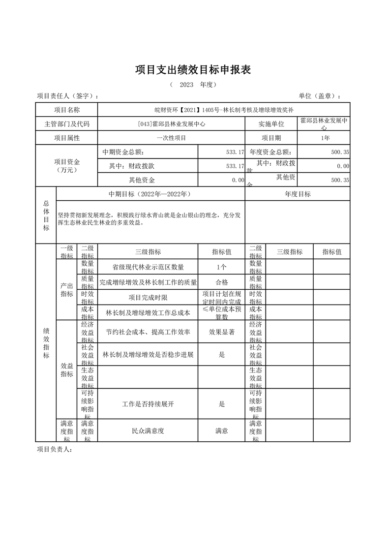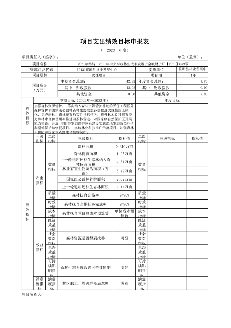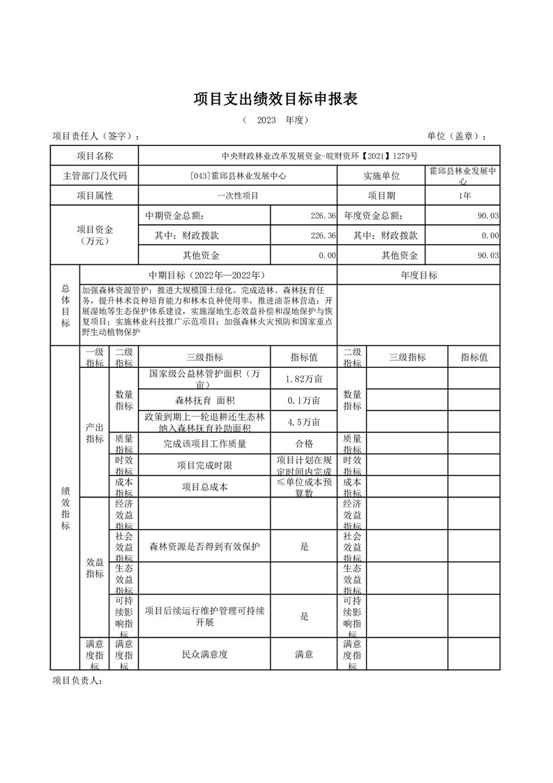 霍邱县林业发展中心2023年度部门项目绩效目标