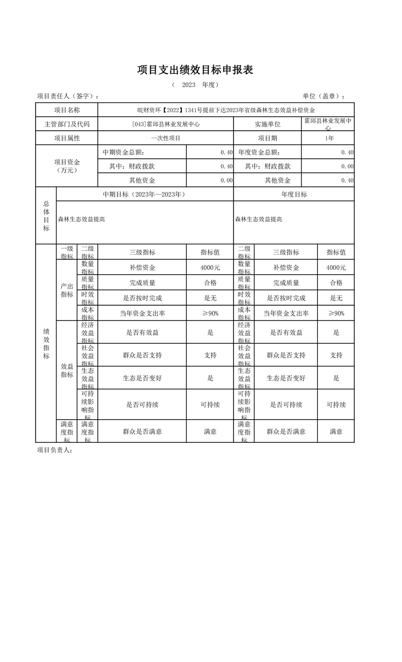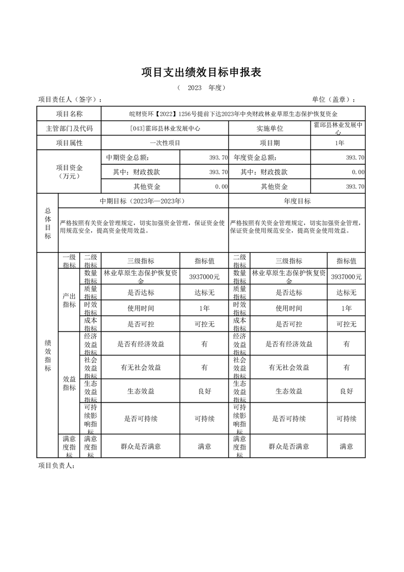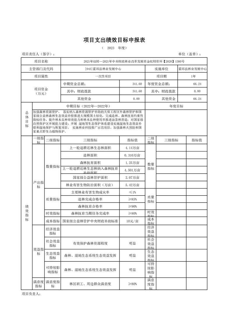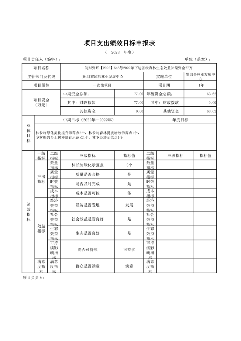 霍邱县林业发展中心2023年度部门项目绩效目标