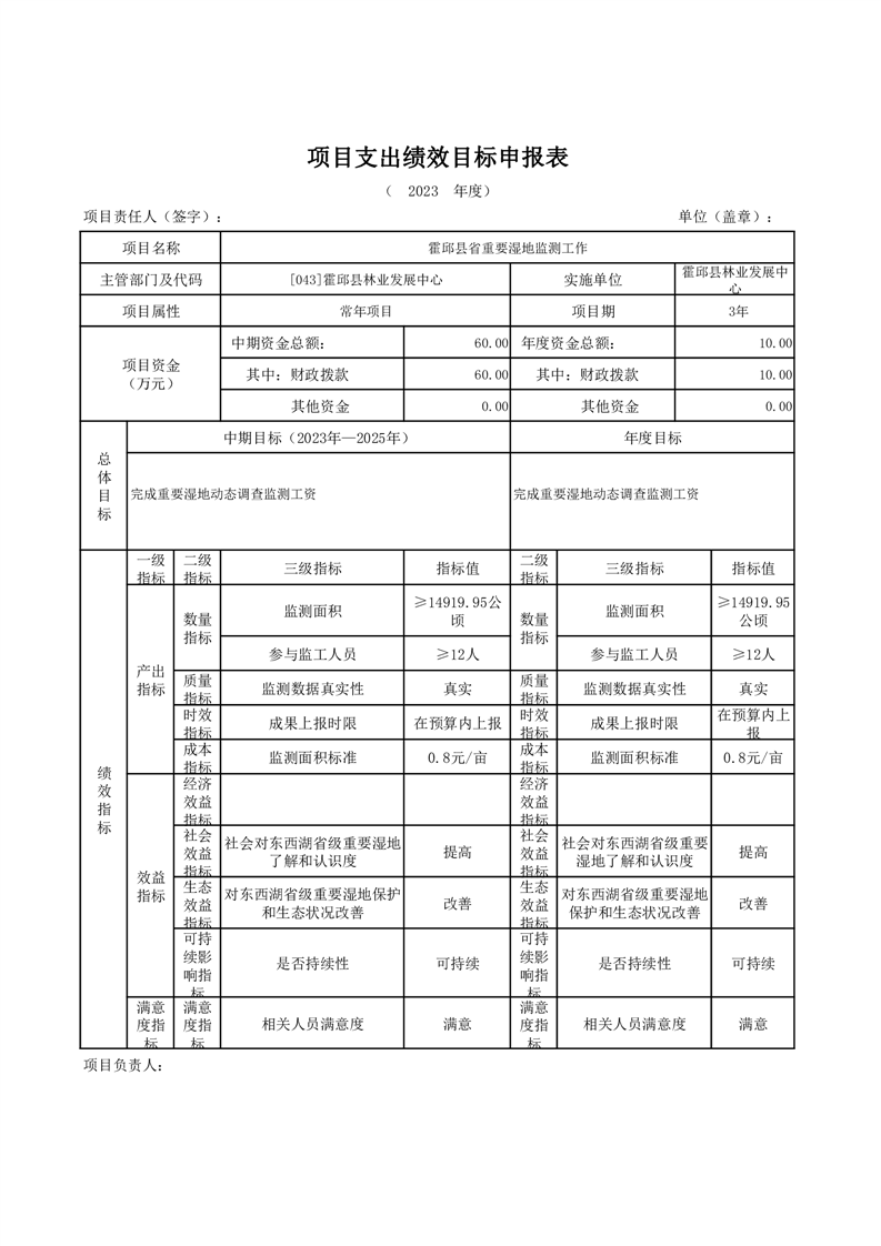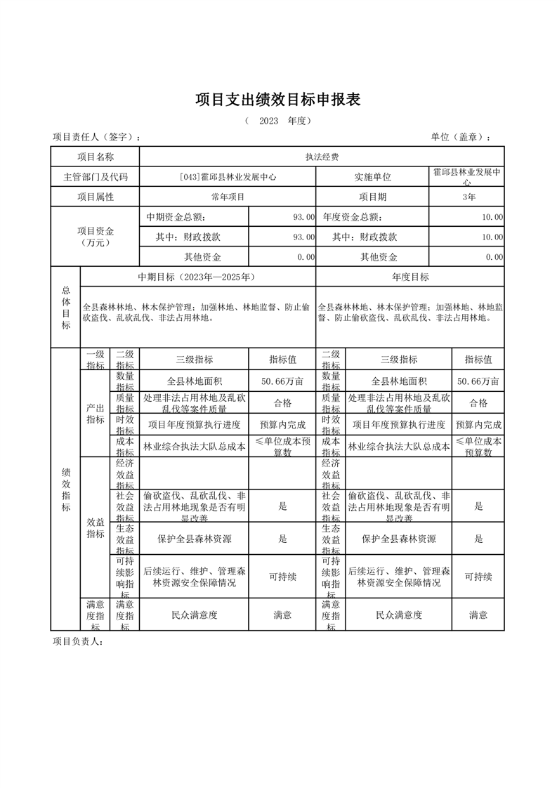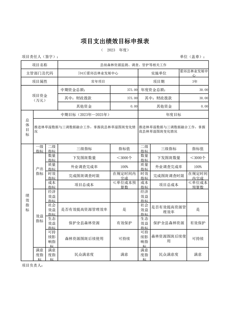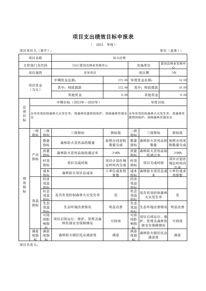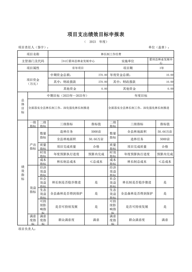 霍邱县林业发展中心2023年度部门项目绩效目标