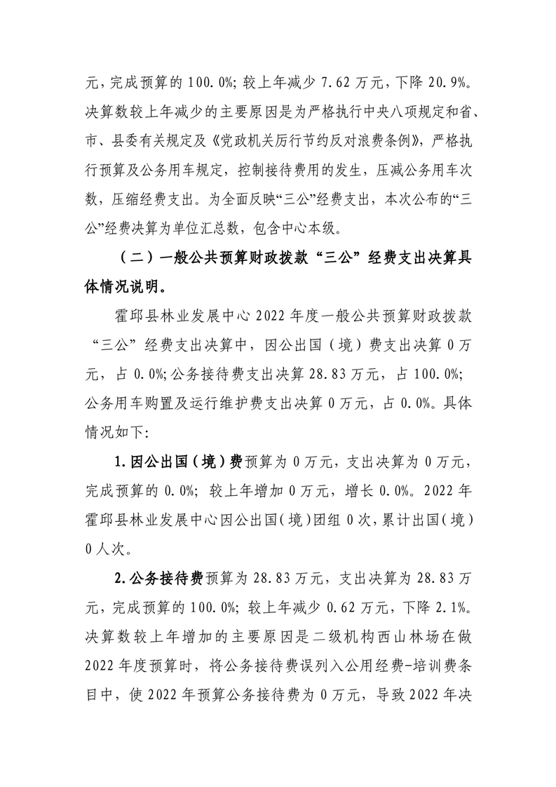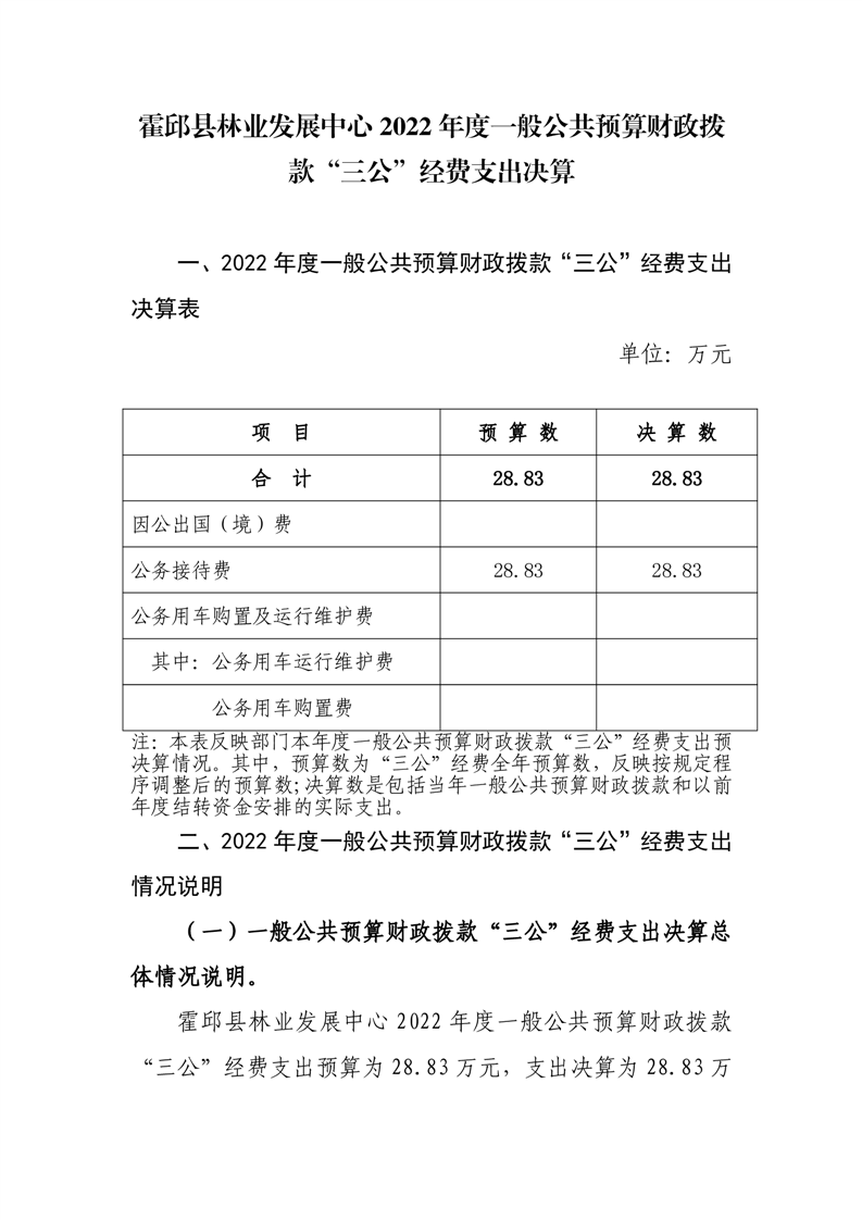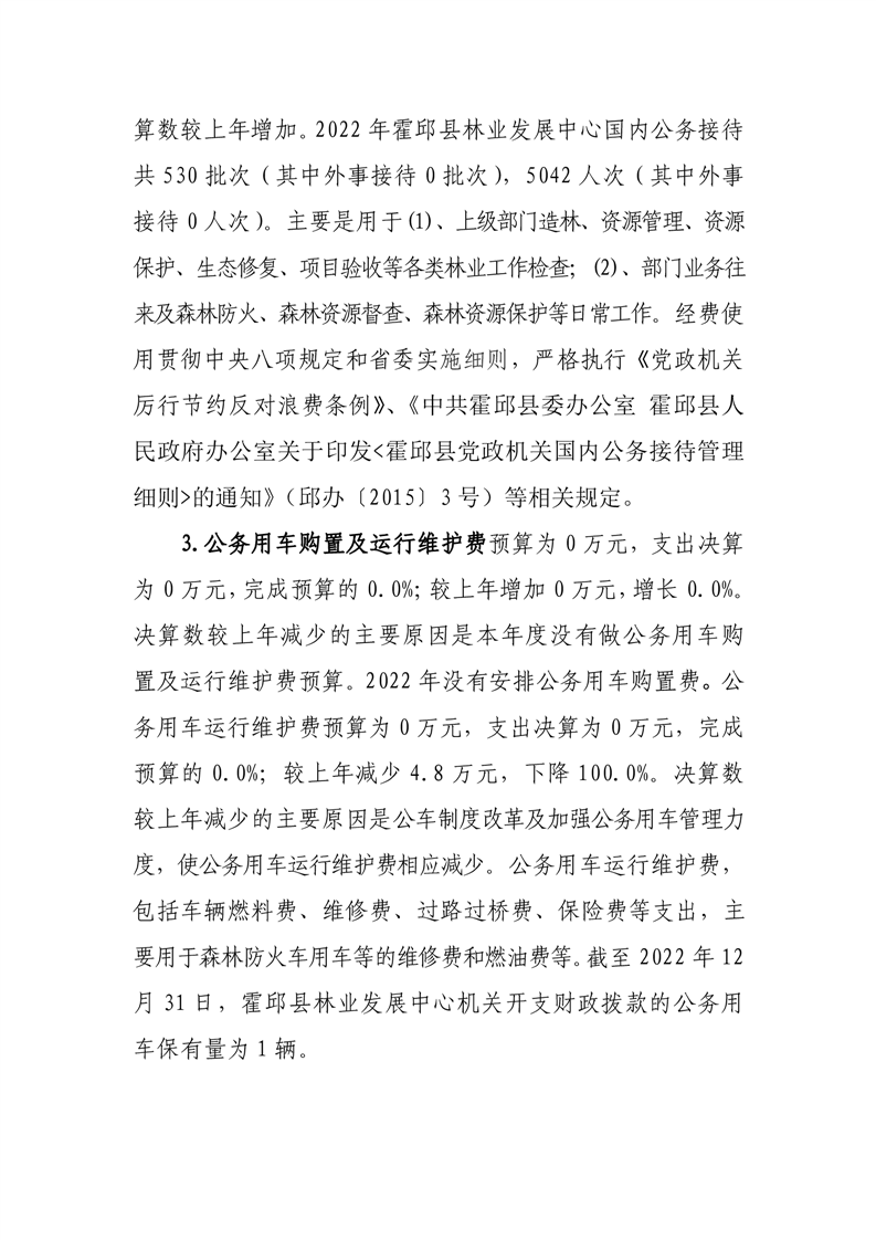 霍邱县林业发展中心(部门)2022 年度一般公共预算财政拨款“三公”经费支出决算