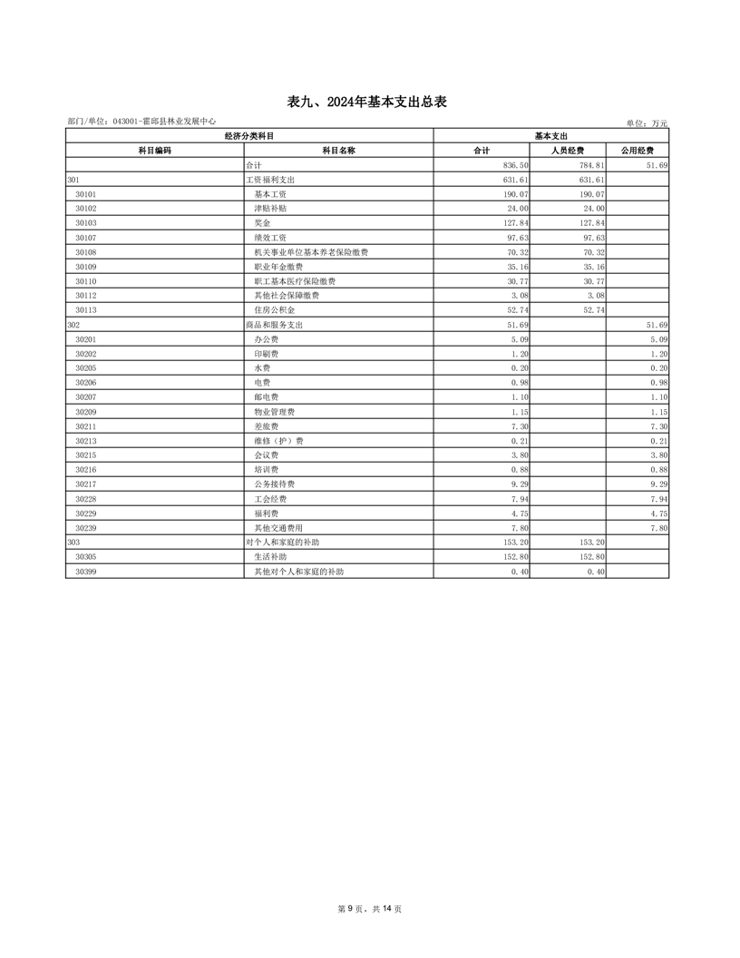 9.霍邱县林业发展中心2024年基本支出总表(附件2-表9)