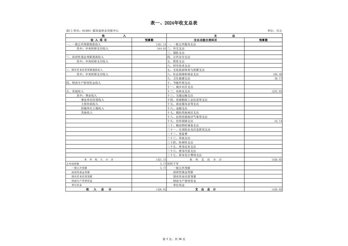 1.霍邱县林业发展中心2024年收支总表(附件2-表1)