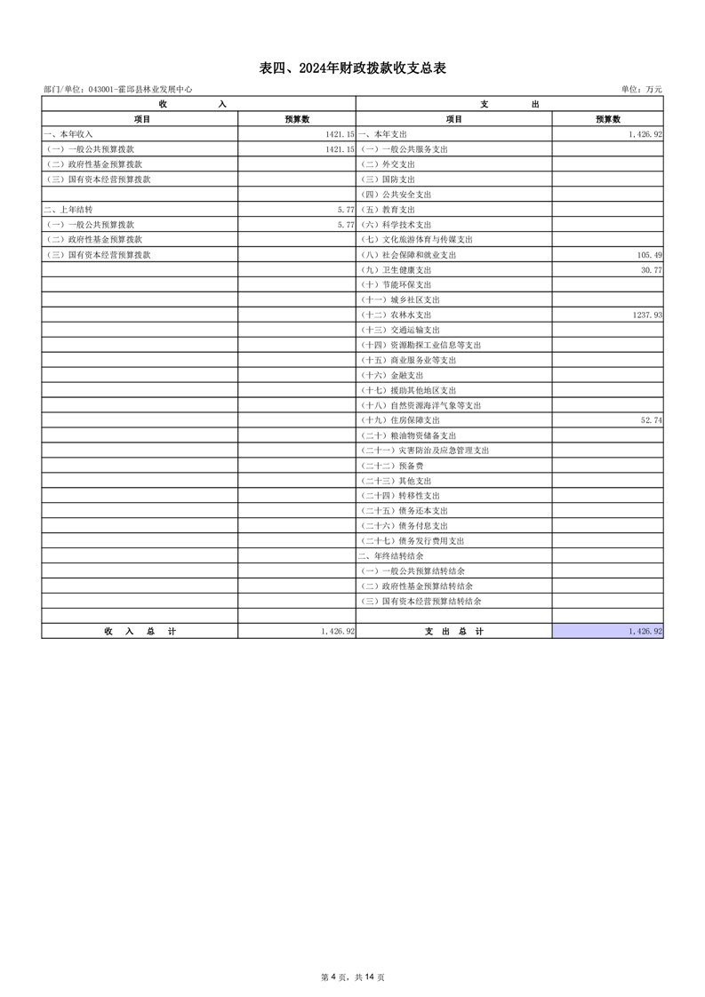 4.霍邱县林业发展中心2024年财政拨款收支总表