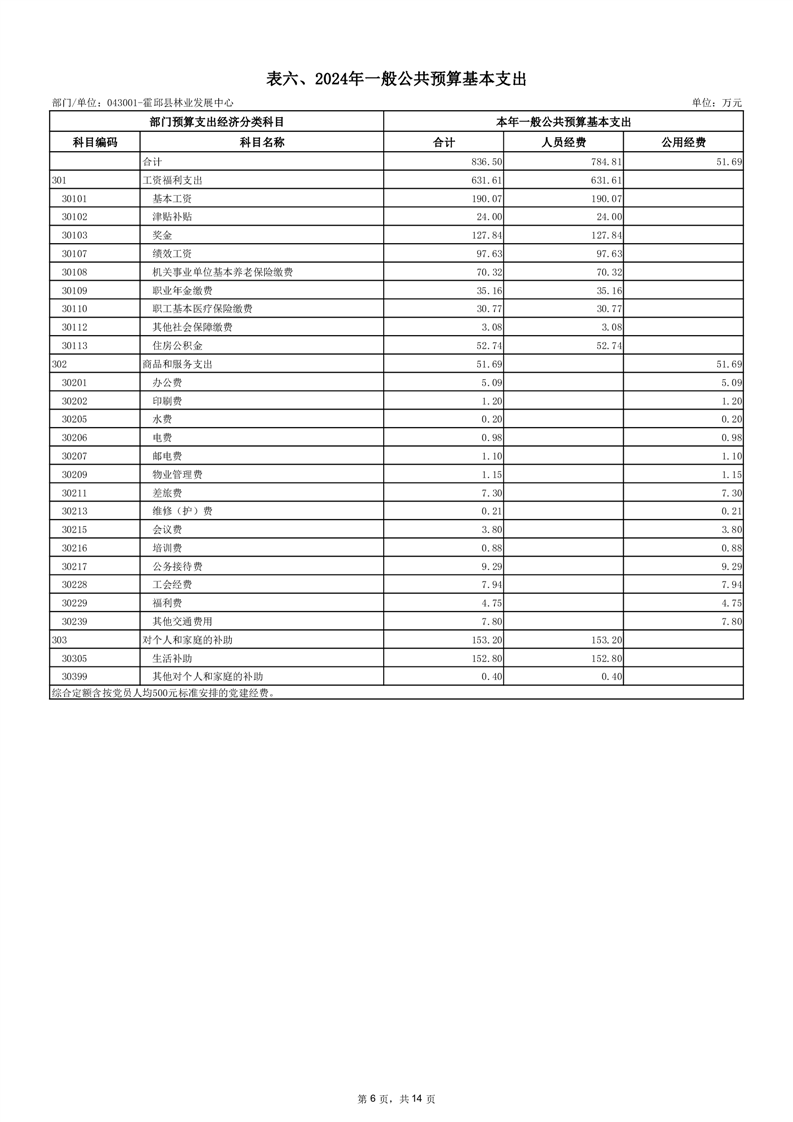 6.霍邱县林业发展中心2024年一般公共预算基本支出表(附件2-表6)