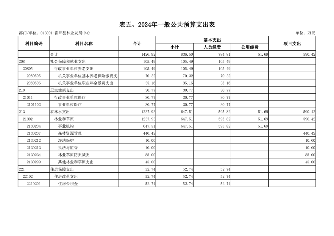 5.霍邱县林业发展中心2024年一般公共预算支出表