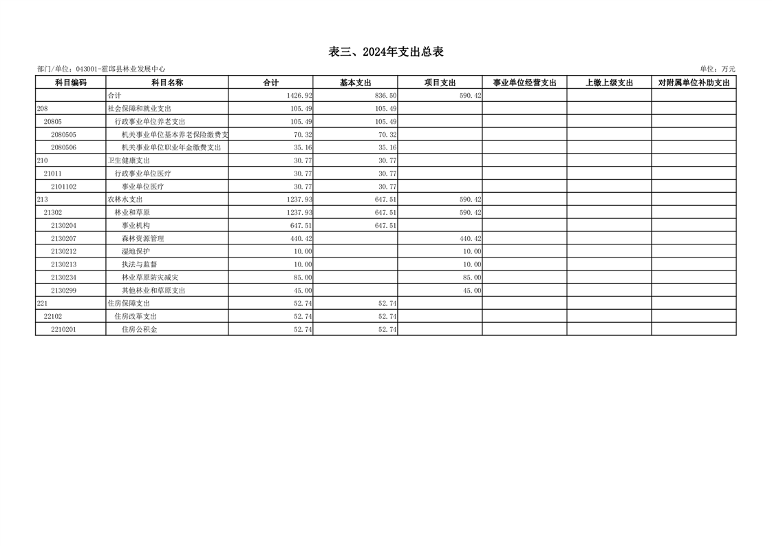 3.霍邱县林业发展中心2024年支出总表(附件2-表3)
