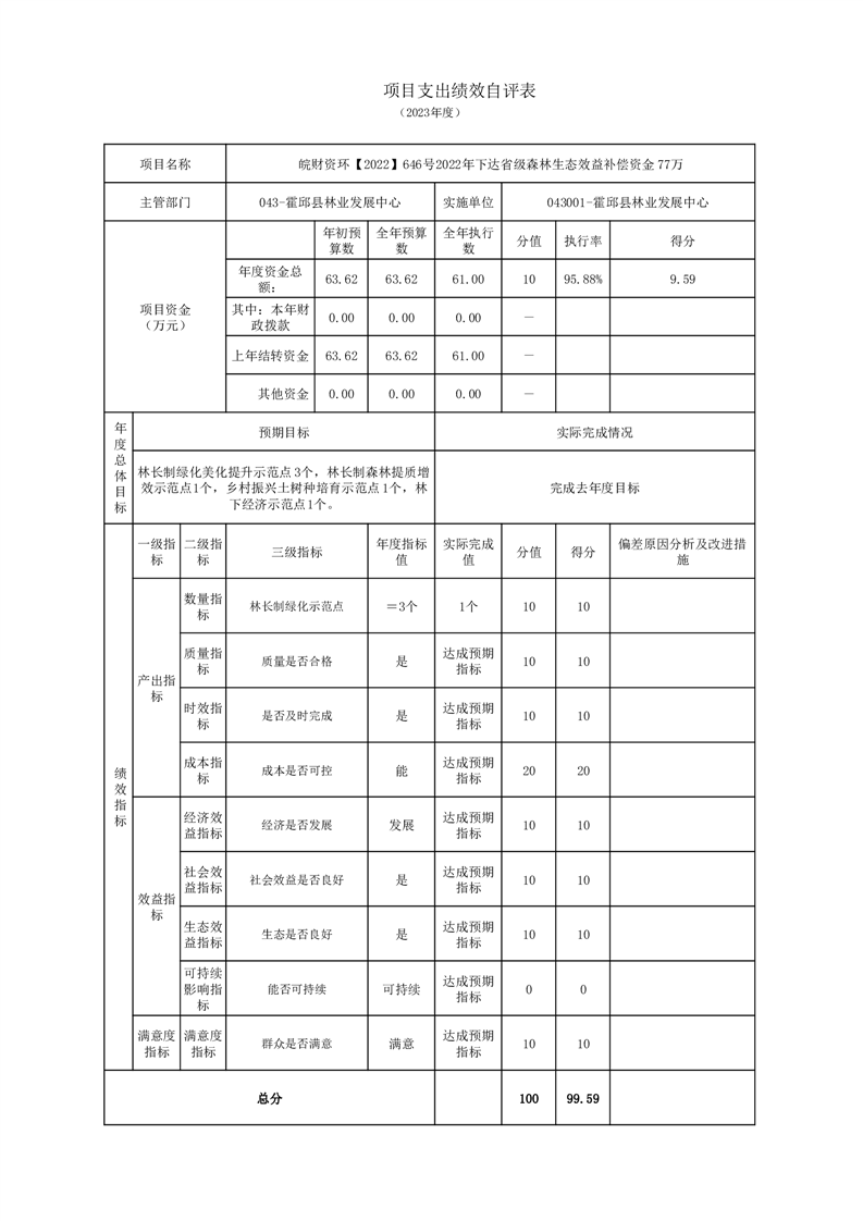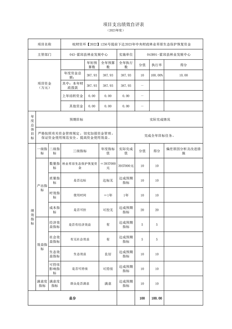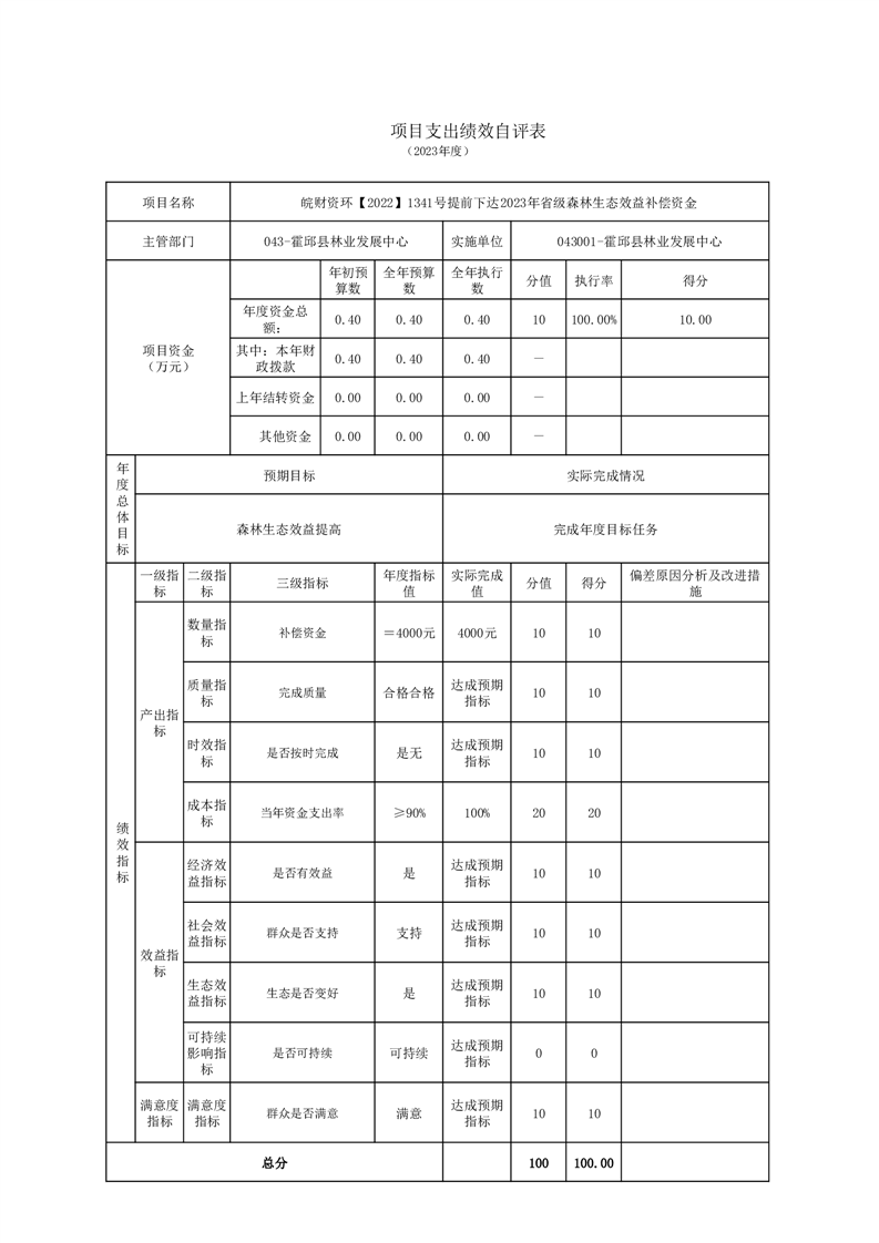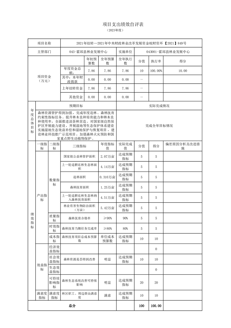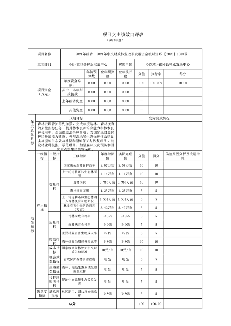霍邱县林业发展中心2023年度单位决算