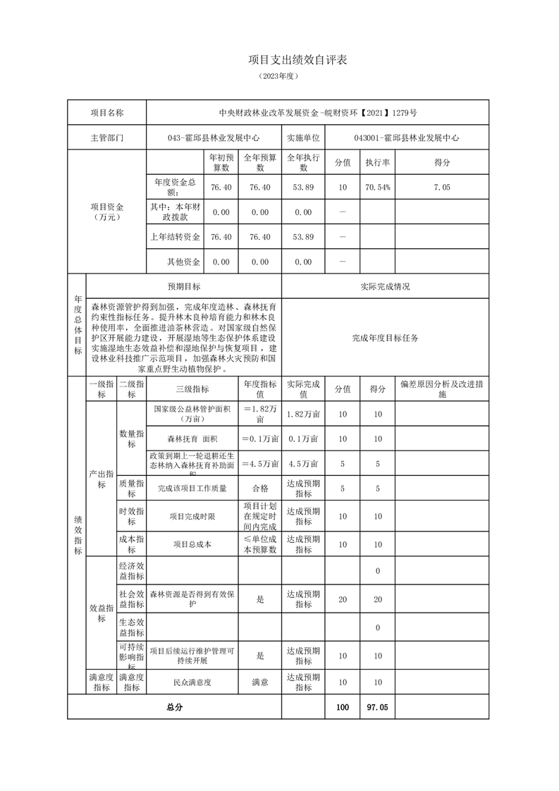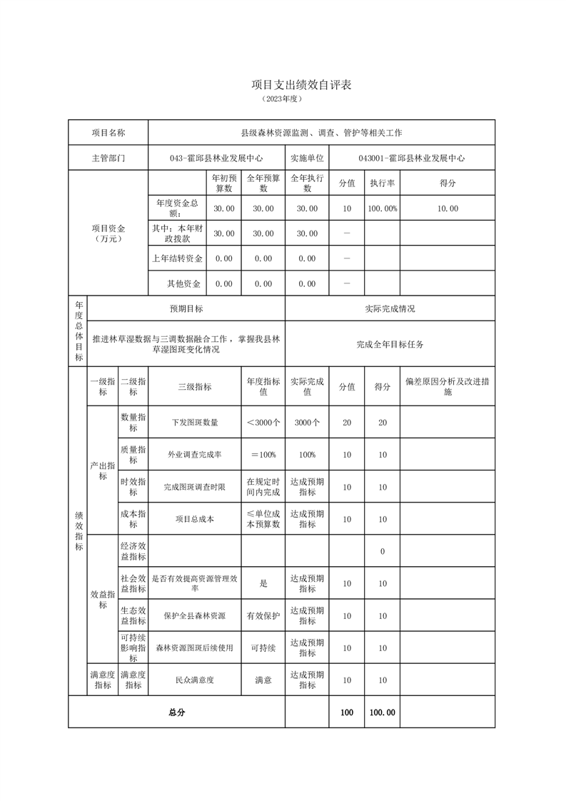 我单位在2023年度单位决算中反映森林防火项目绩效自评综述和项目支出绩效自评表(涉密项目除外)。