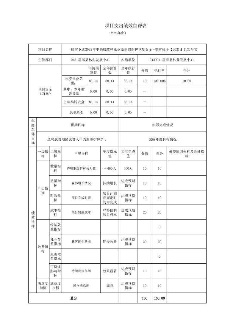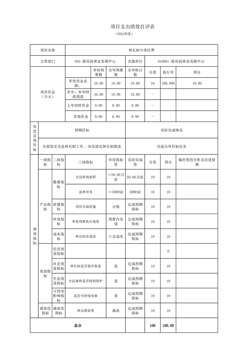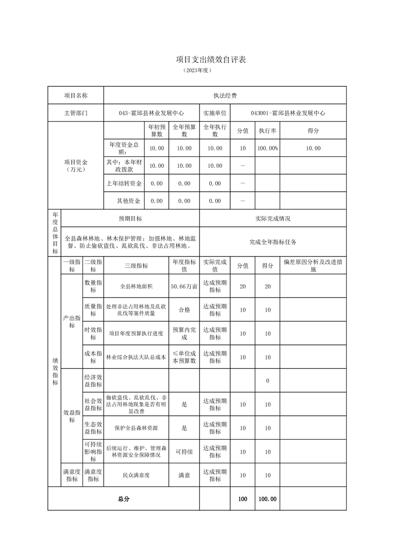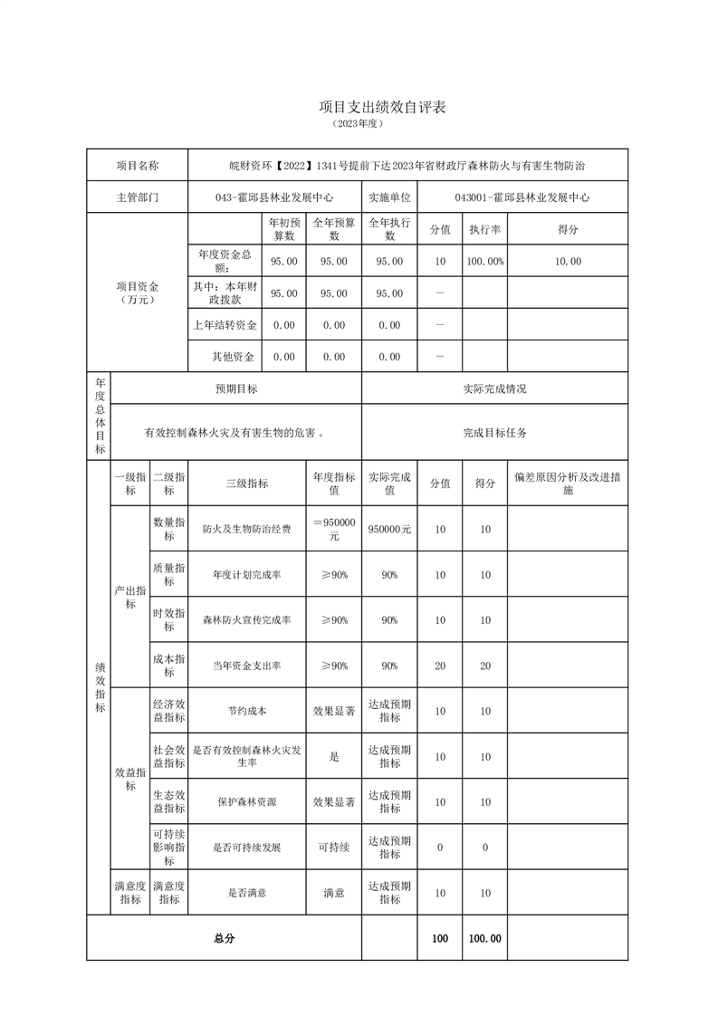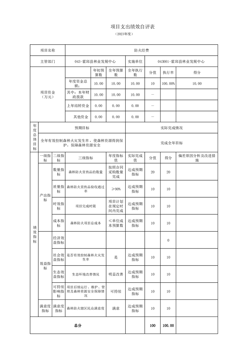 森林防火项目的《项目支出绩效自评表》