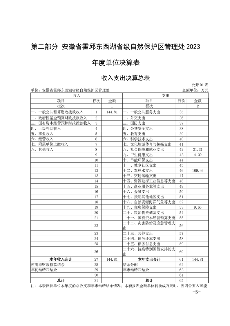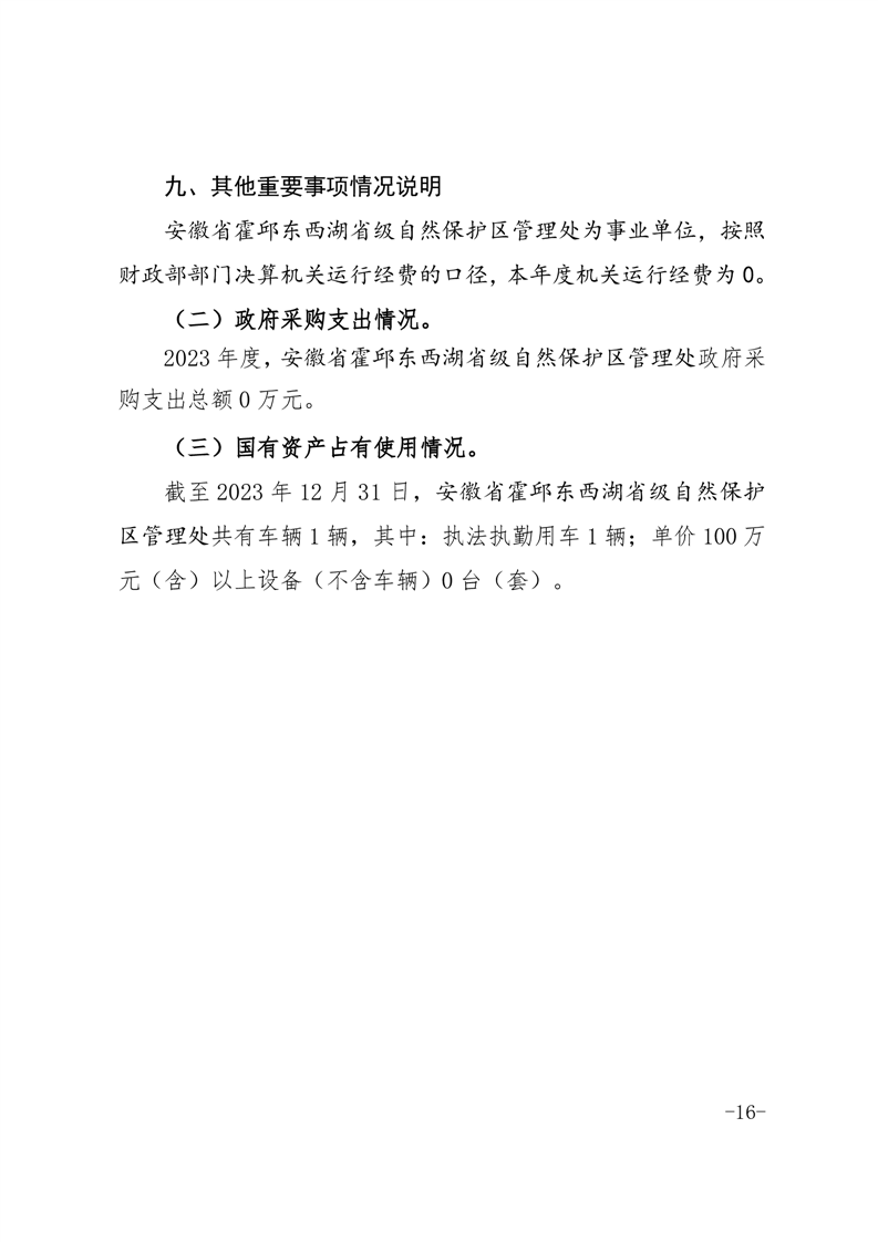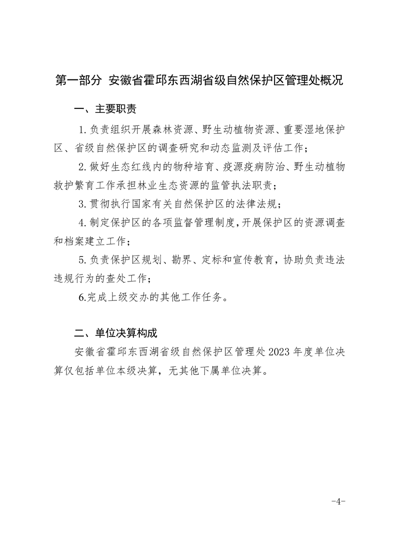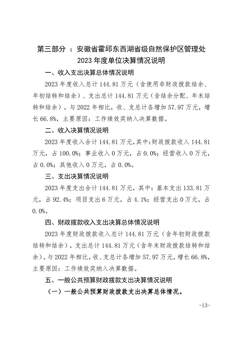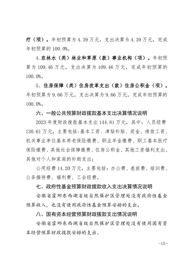 安徽省霍邱东西湖省级自然保护区管理处2023年单位决算