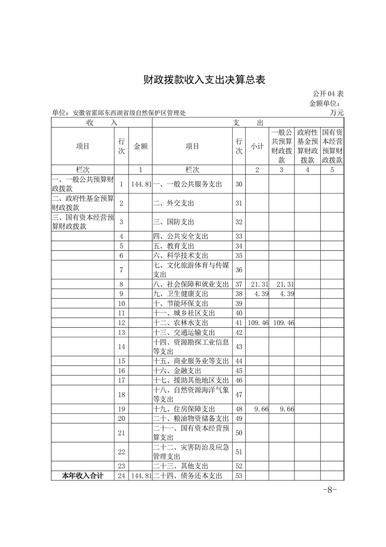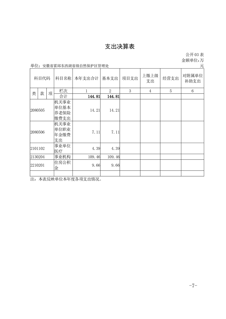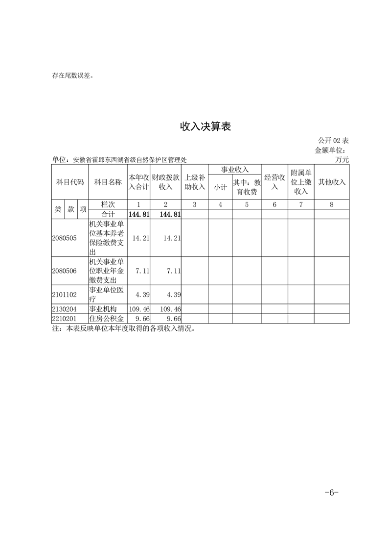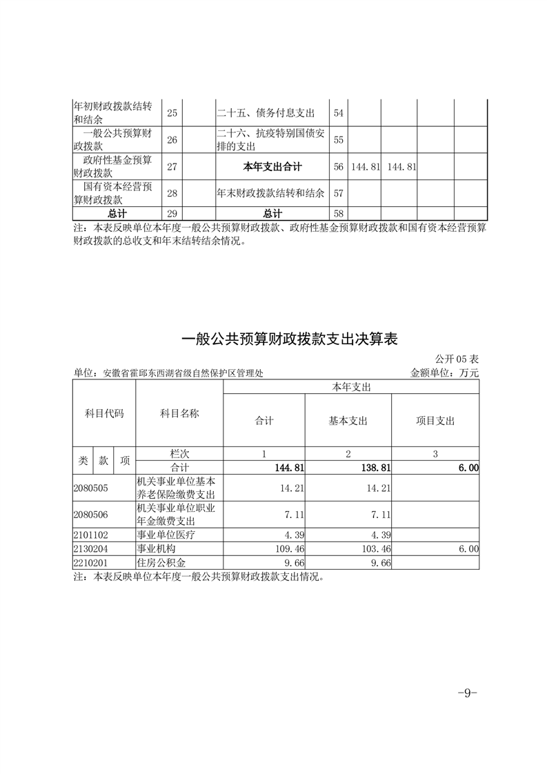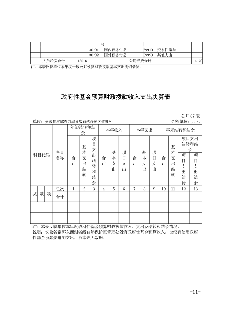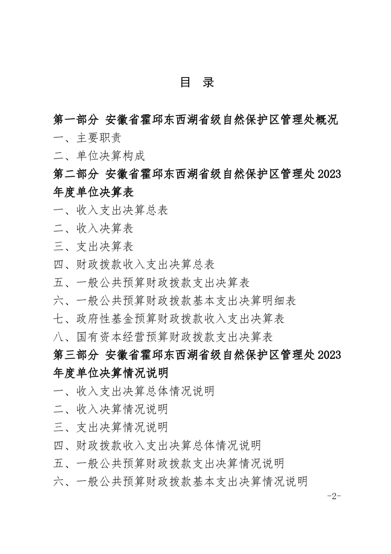 安徽省霍邱东西湖省级自然保护区管理处2023年单位决算