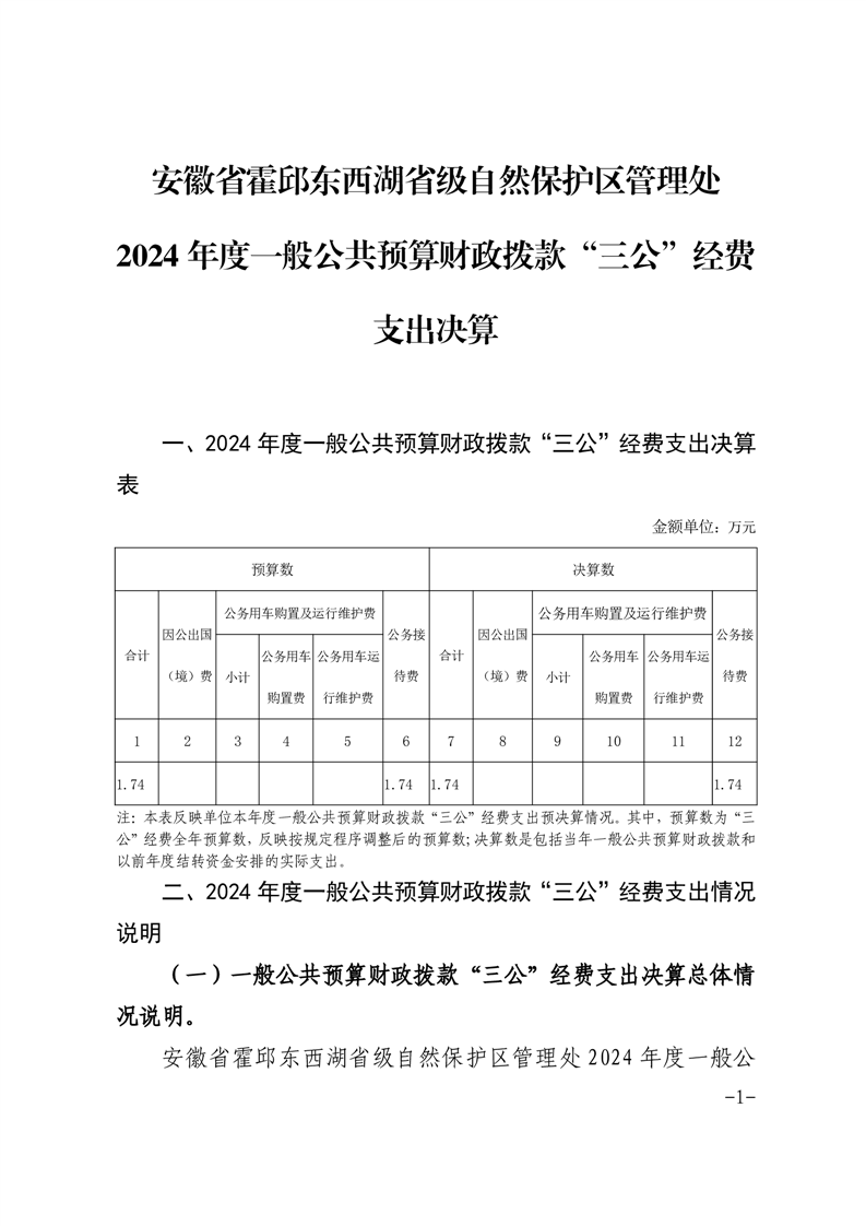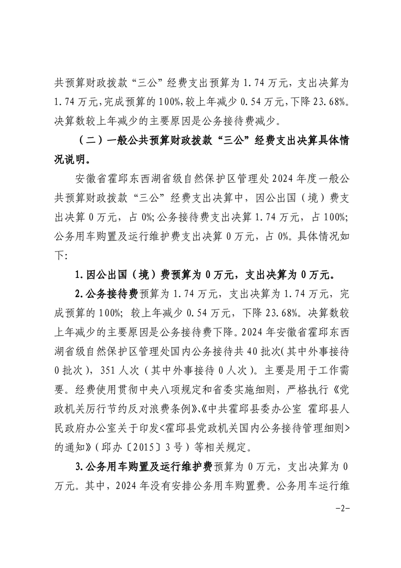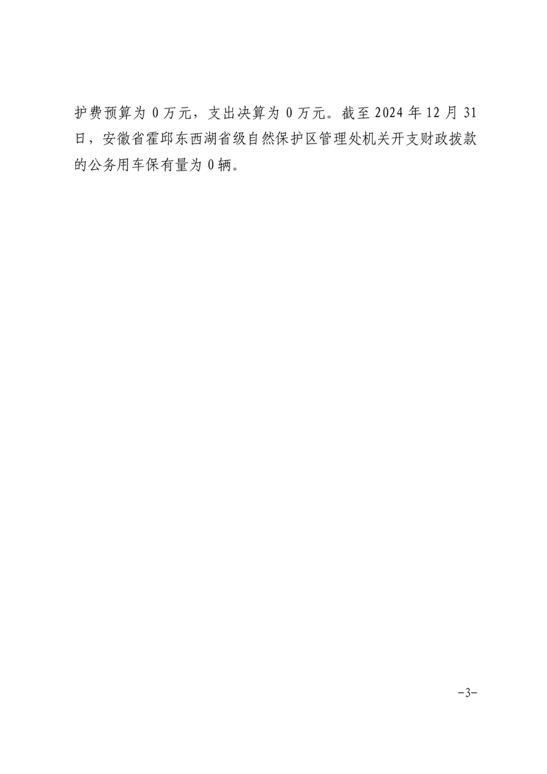 安徽省霍邱东西湖省级自然保护区管理处 2024年度一般公共预算财政拨款“三公”经费支出决算