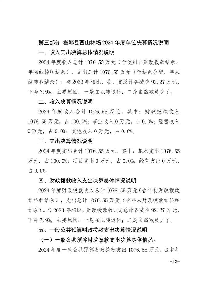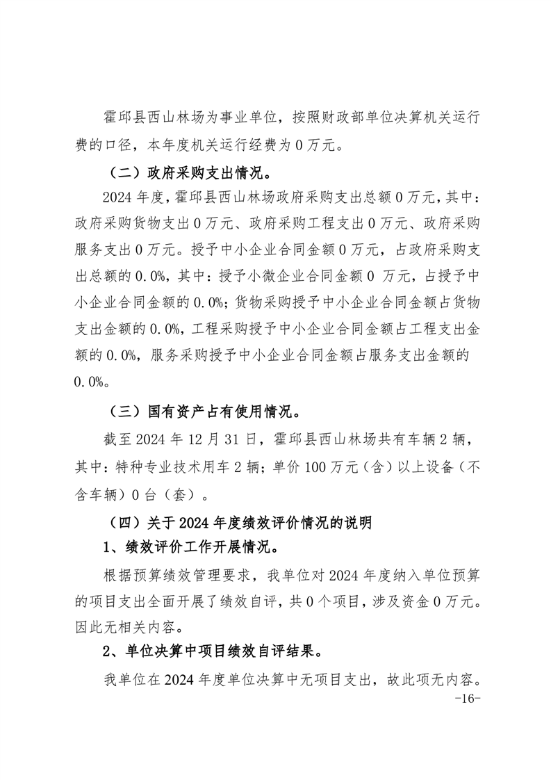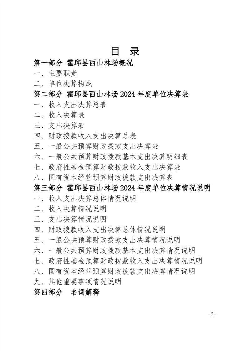 霍邱县西山林场2024年度单位决算
