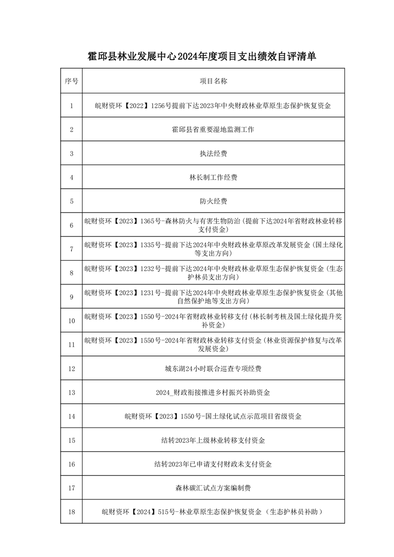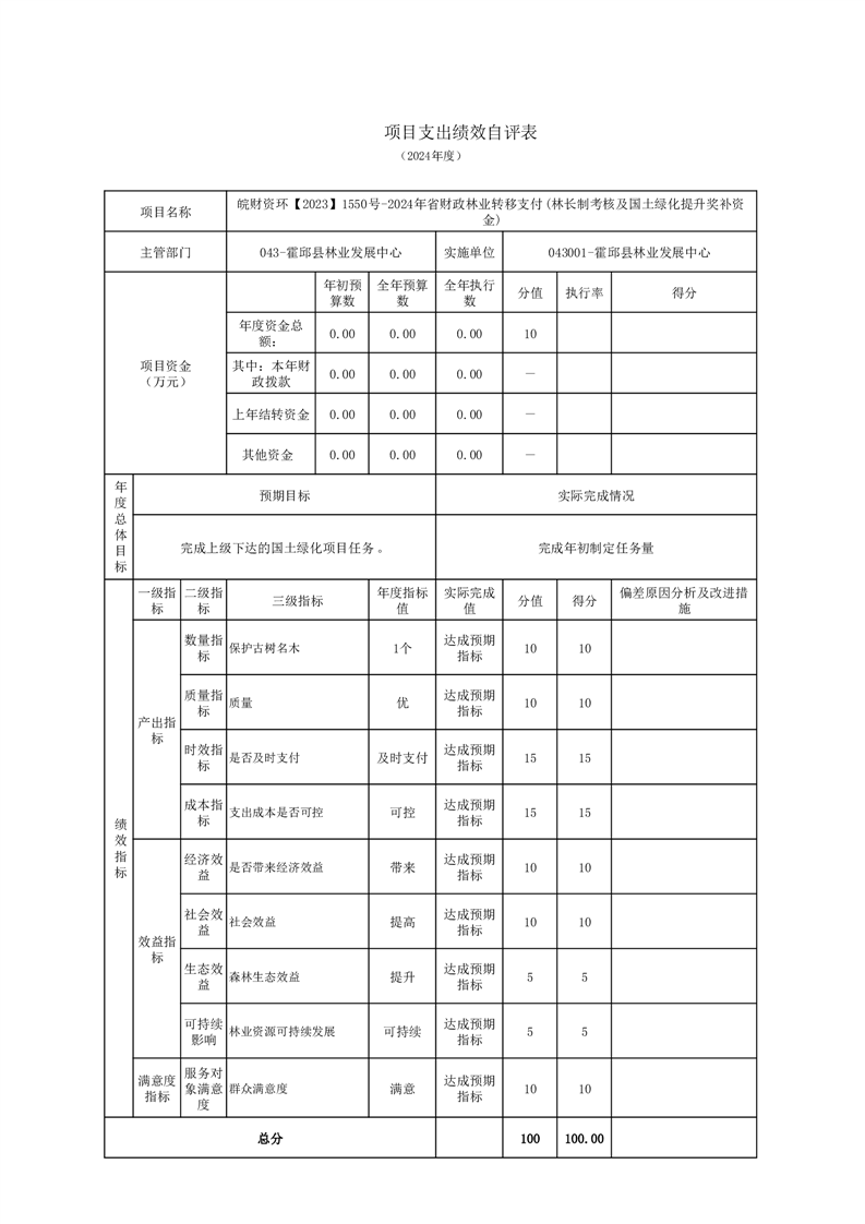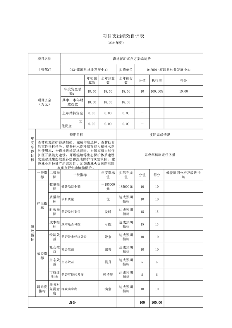 (本级)霍邱县林业发展中心2024年项目绩效自评表