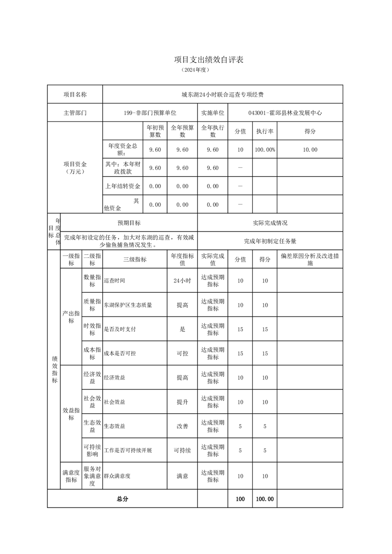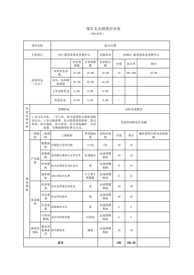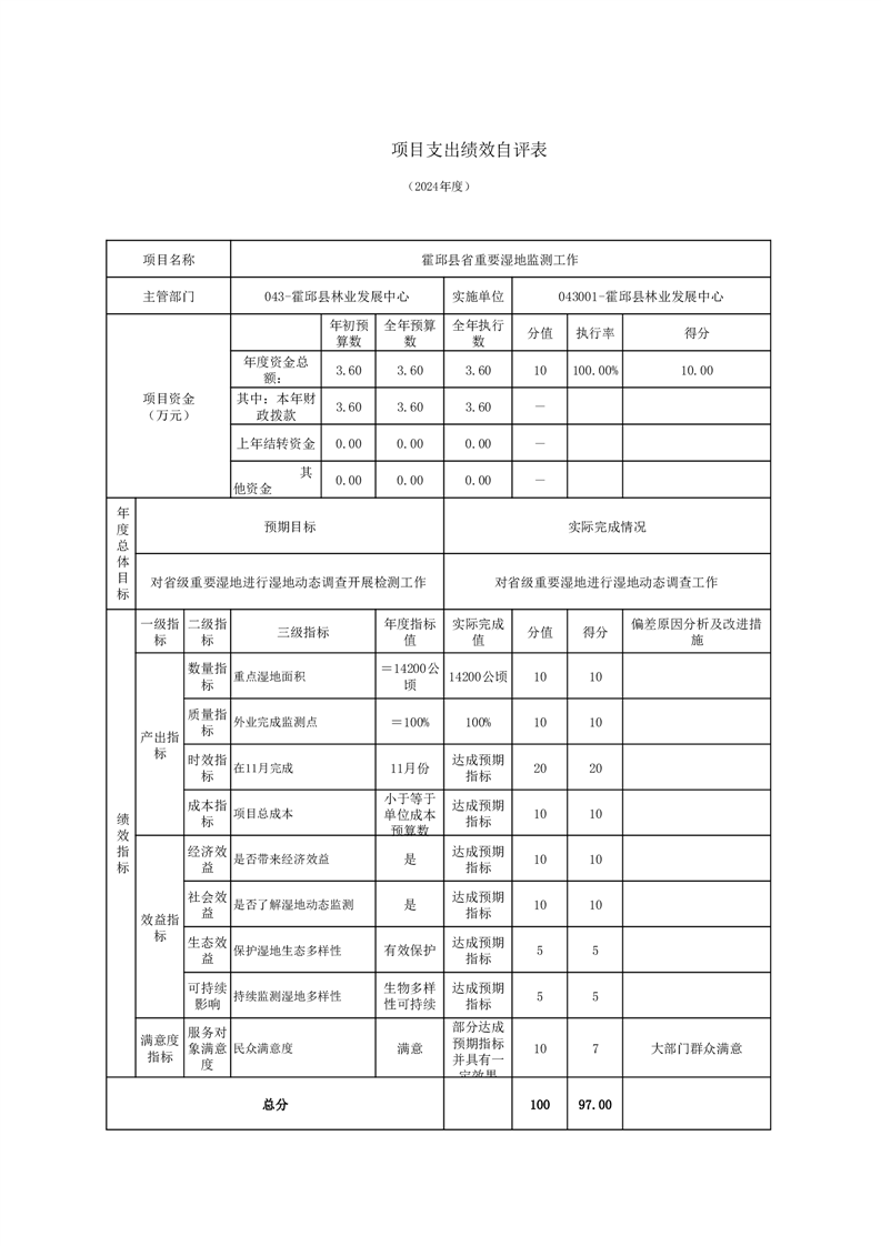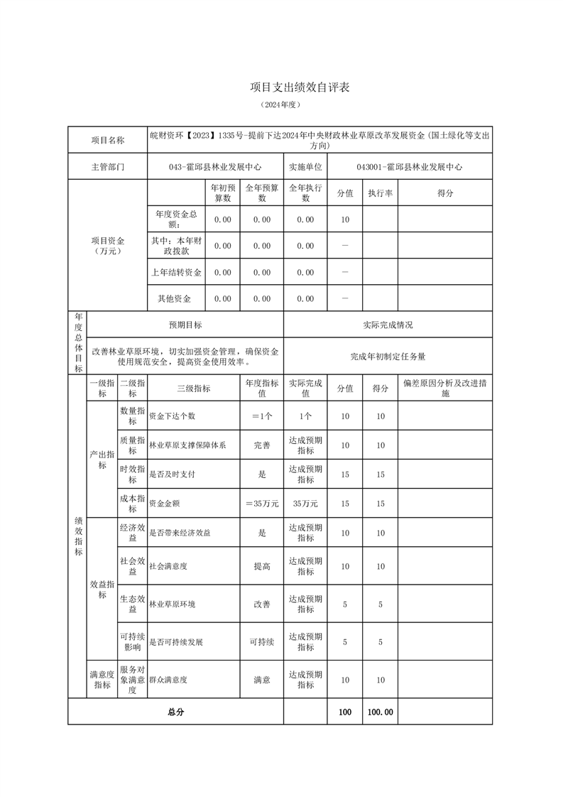 (本级)霍邱县林业发展中心2024年项目绩效自评表