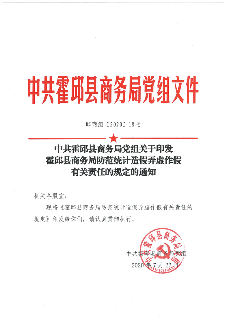 霍邱县商务局防范统计造假弄虚作假有关责任的规定