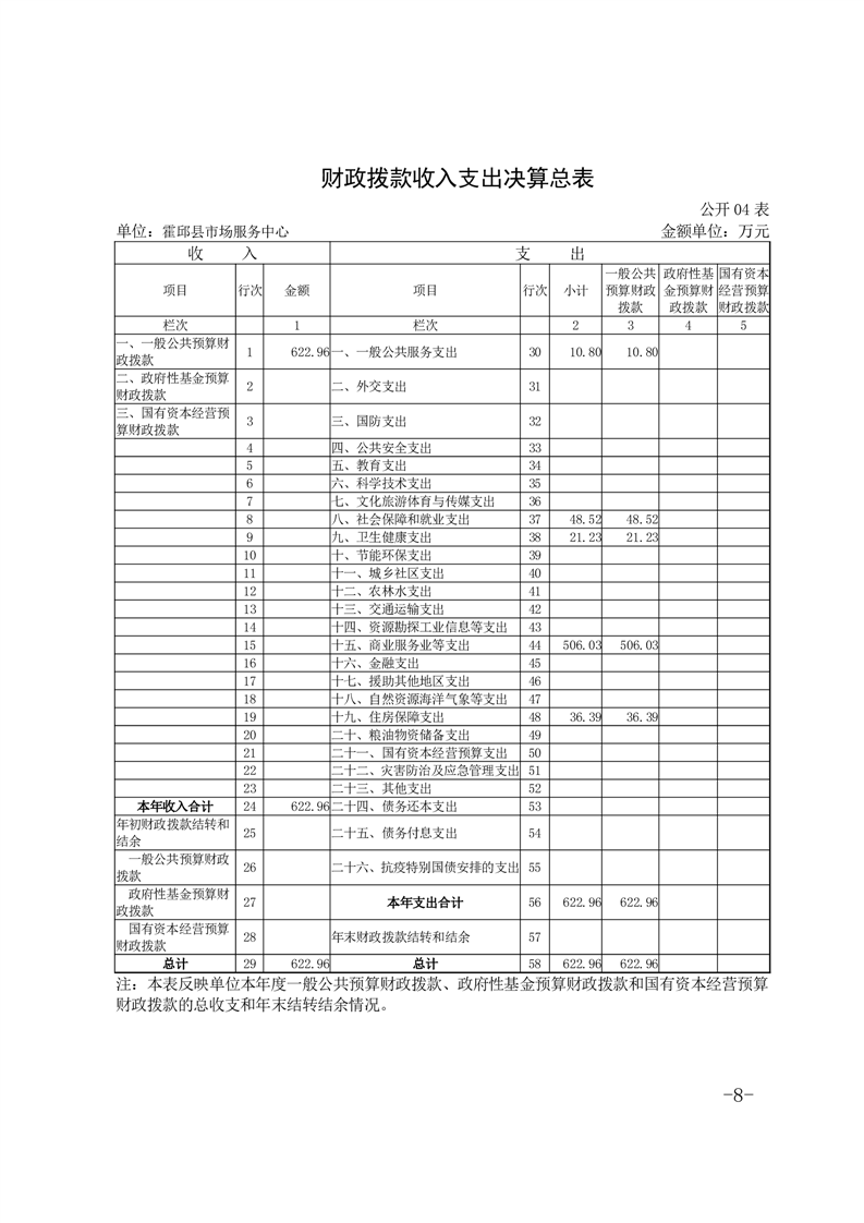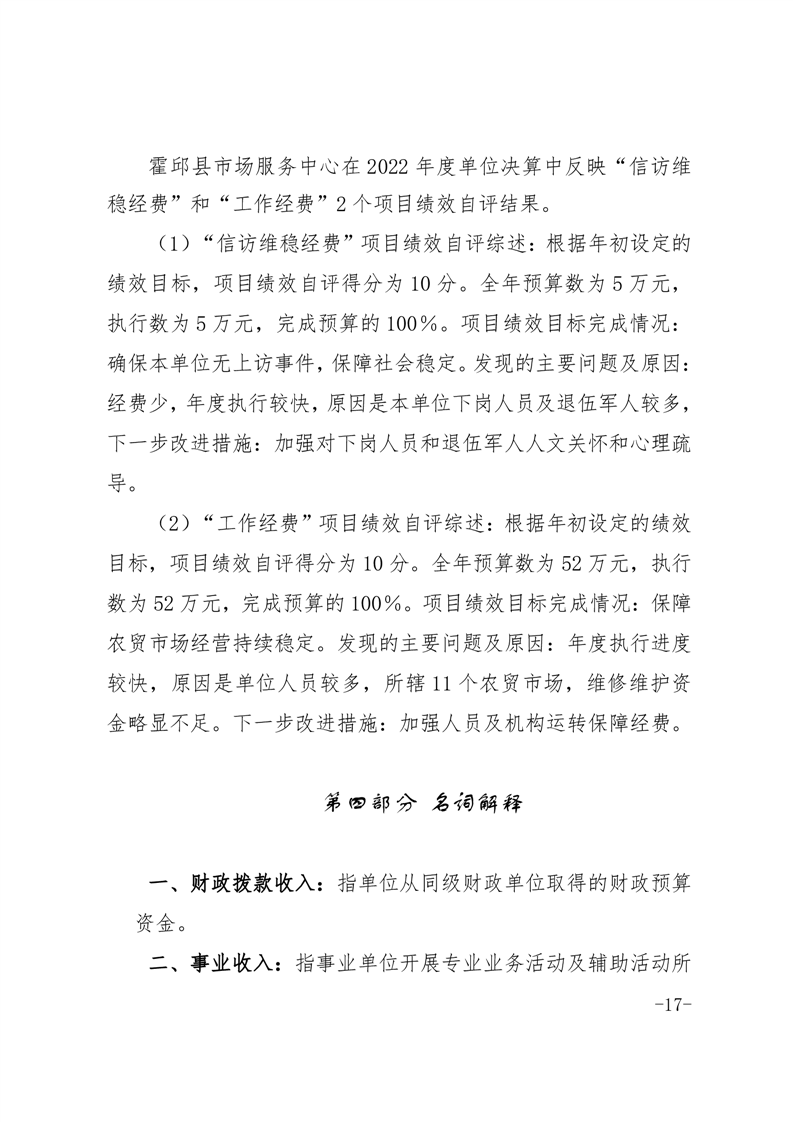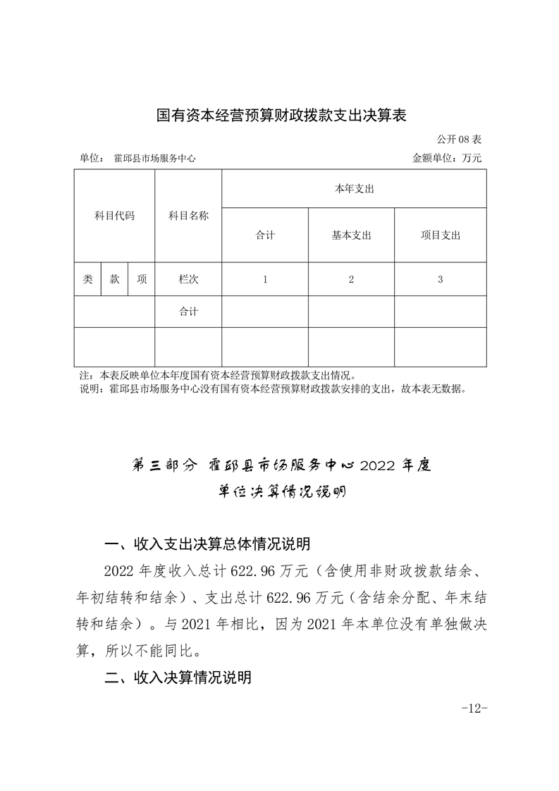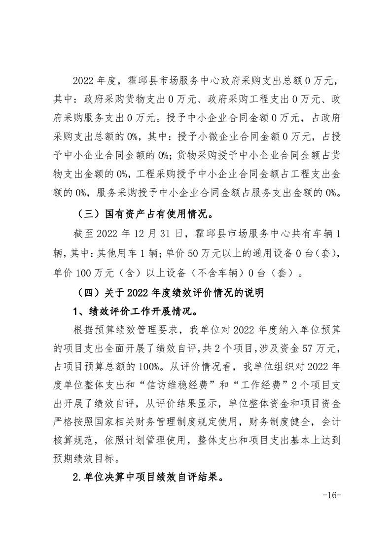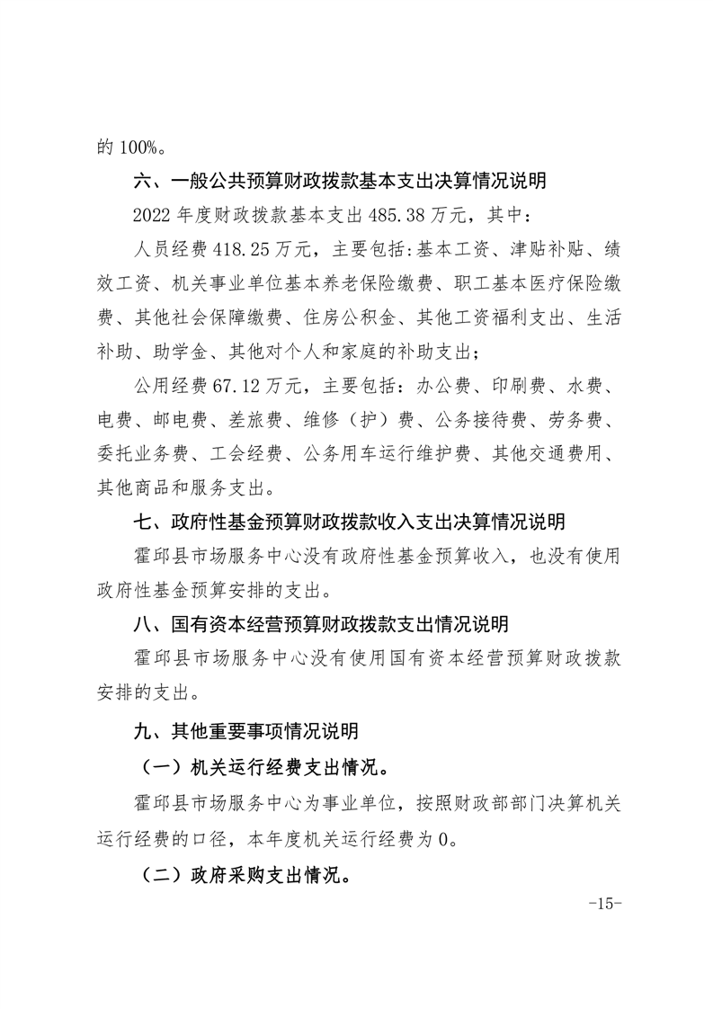 霍邱县市场服务中心2022年度单位决算公开