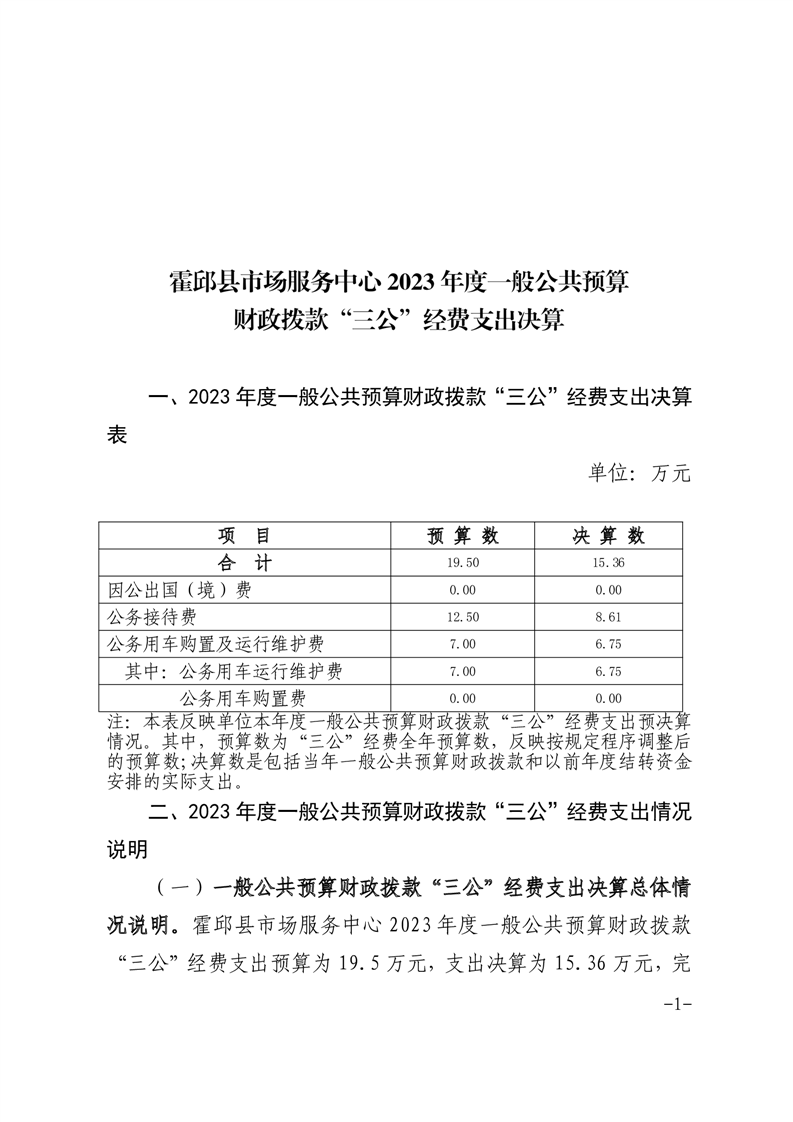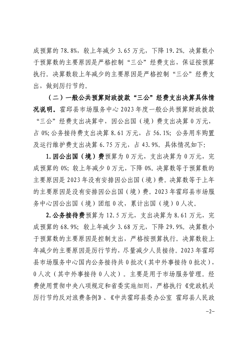 霍邱县市场服务中心单位2023年度一般公共预算财政拨款 “三公”经费支出决算