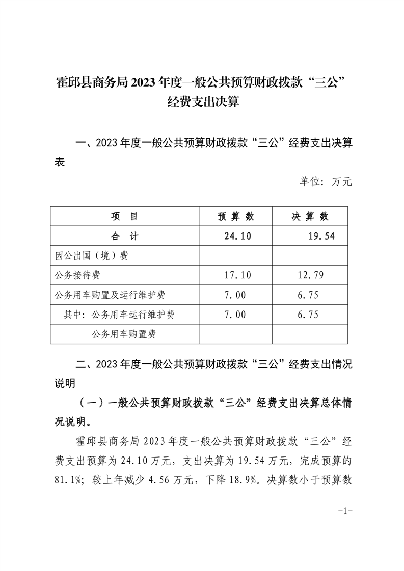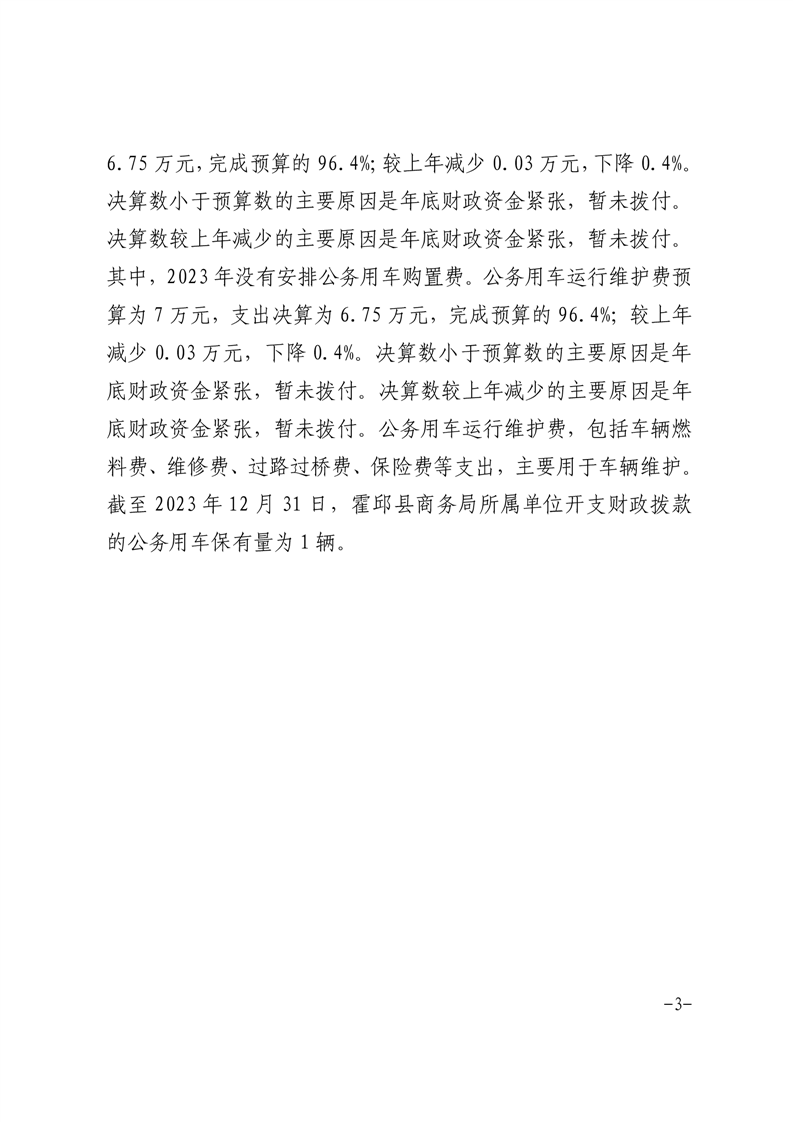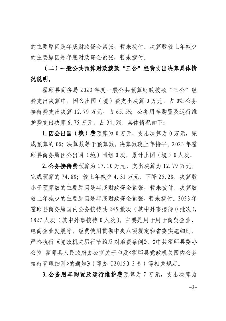 霍邱县商务局部门 2023年度一般公共预算财政拨款 “三公”经费支出决算