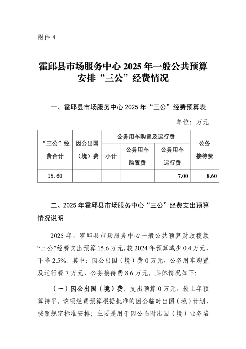 霍邱县市场服务中心单位2025年“三公经费”预算公开