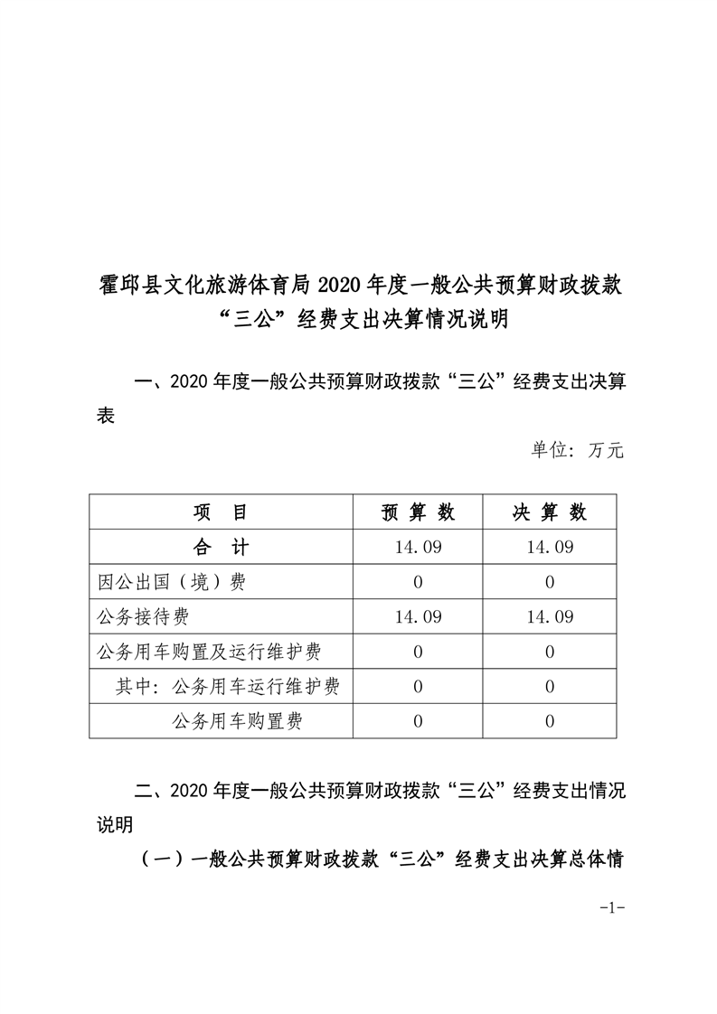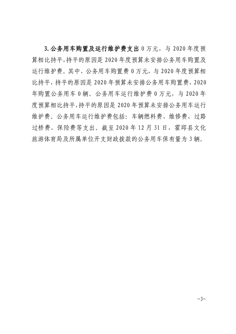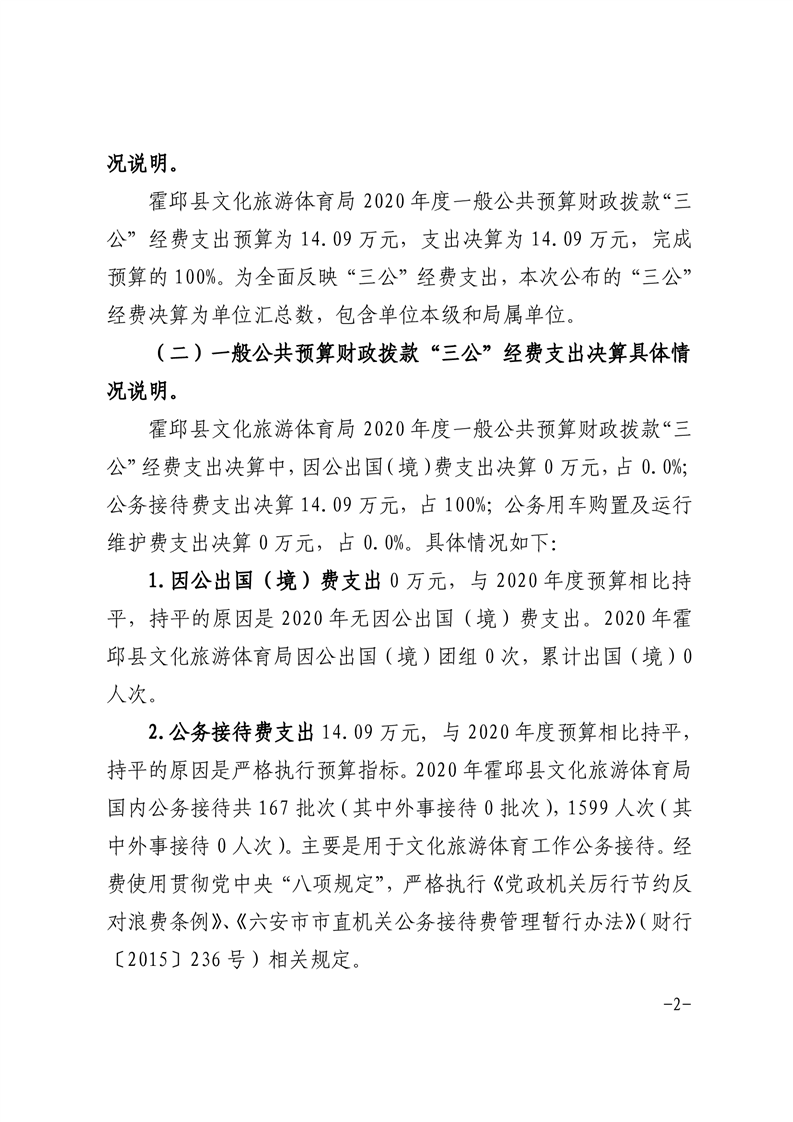 霍邱县文化旅游体育局2020年决算三公经费公开