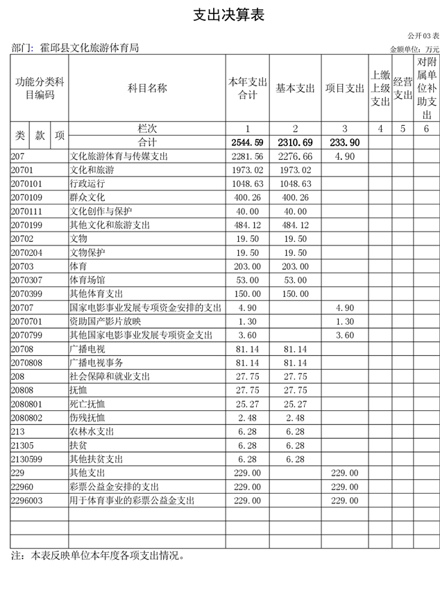 2021年一般公共预算财政拨款支出2544.59万元,文化旅游体育与传媒(类)体育(款)支出203.00万元,占7.98%,其中文化旅游体育与传媒(类)体育(款)体育场馆(项)支出53.00万元;文化旅游体育与传媒(类)体育(款)其他体育支出(项)支出150.00万元。