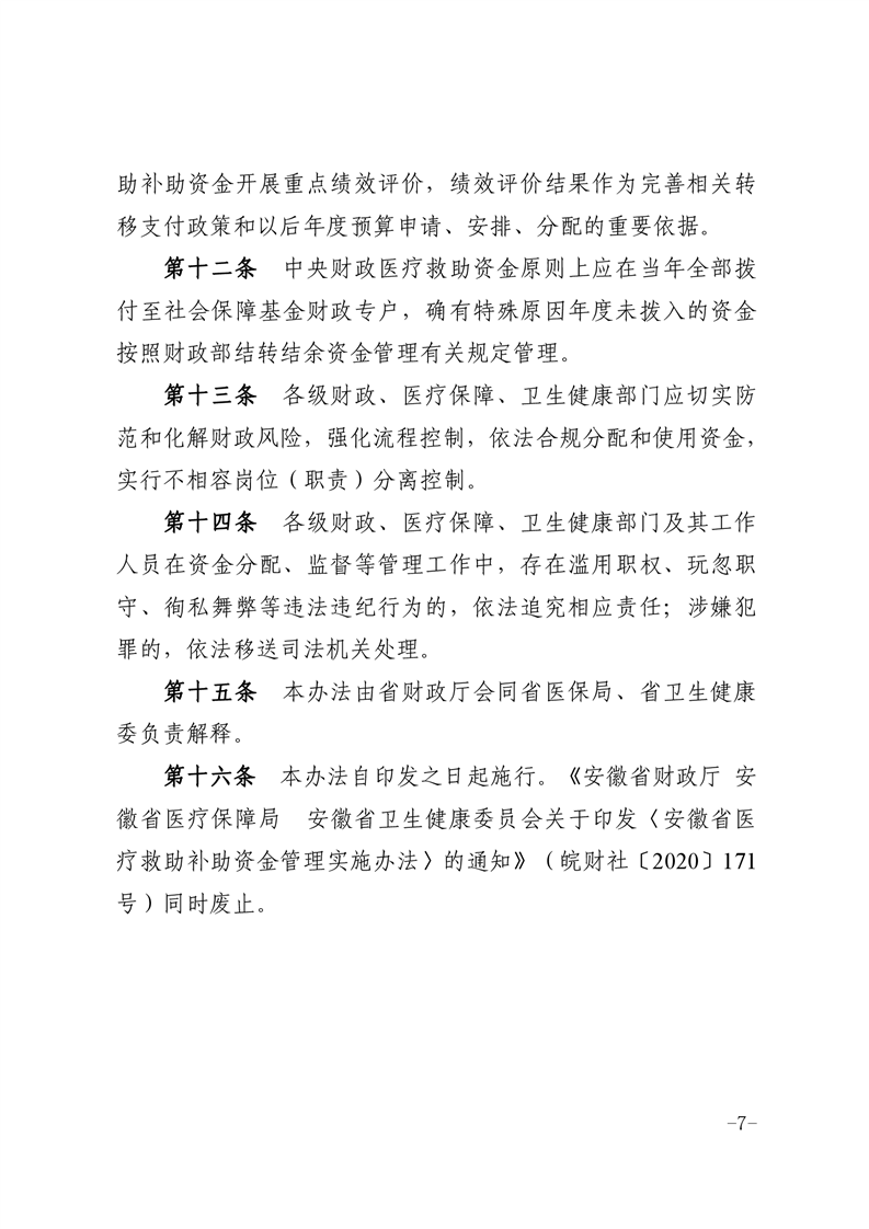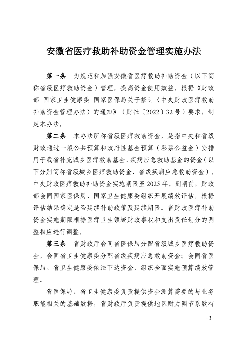 关于修订《安徽省医疗救治资金管理实施办法》的通知