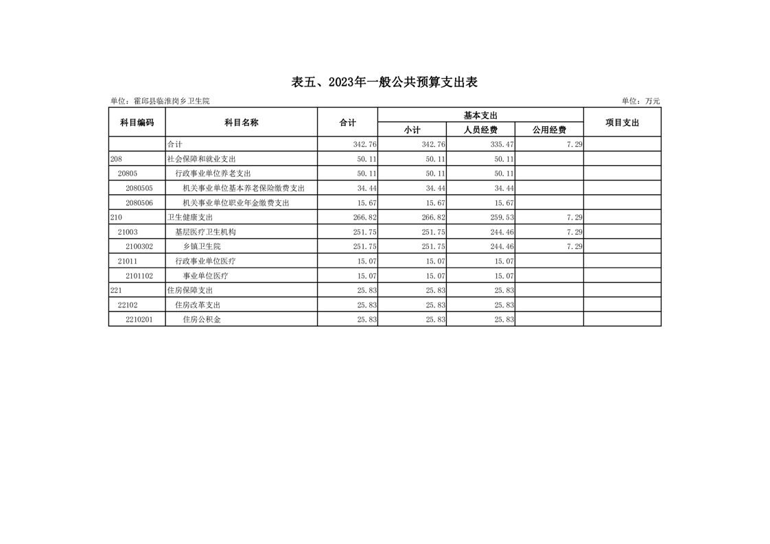霍邱县临淮岗乡卫生院2023年单位预算公开