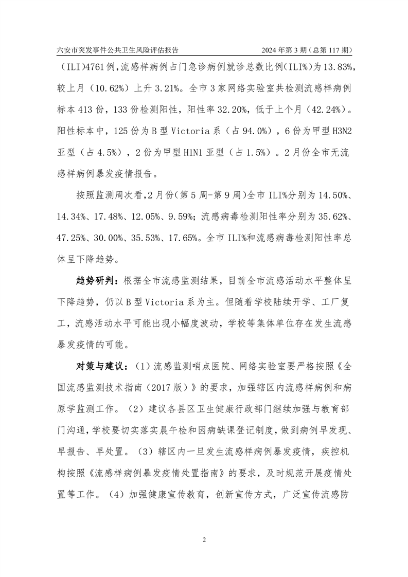 【预警信息】2024年3月份六安市突发公共卫生事件预警信息及对策建议