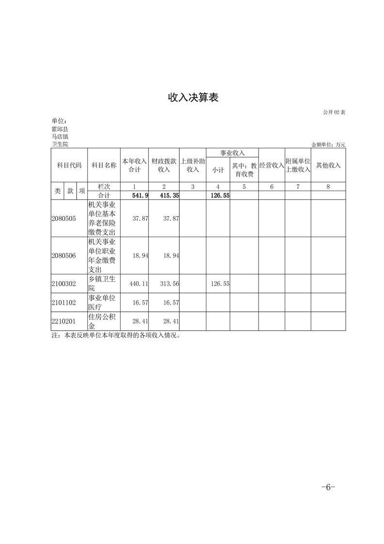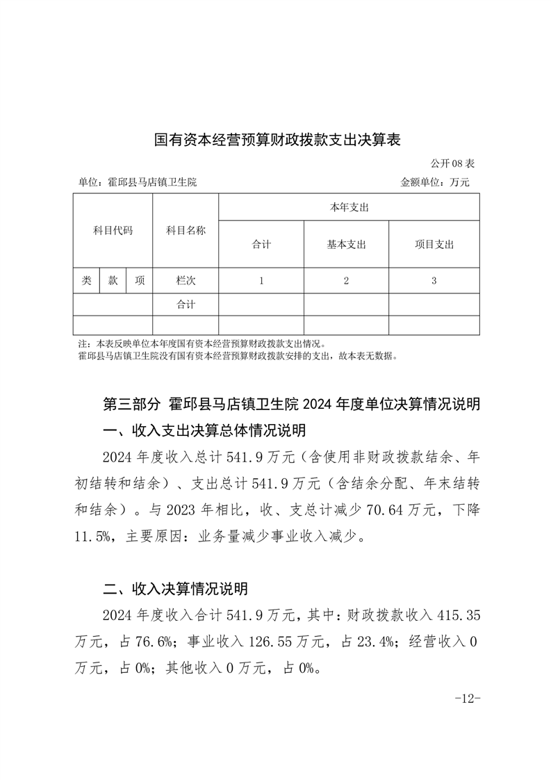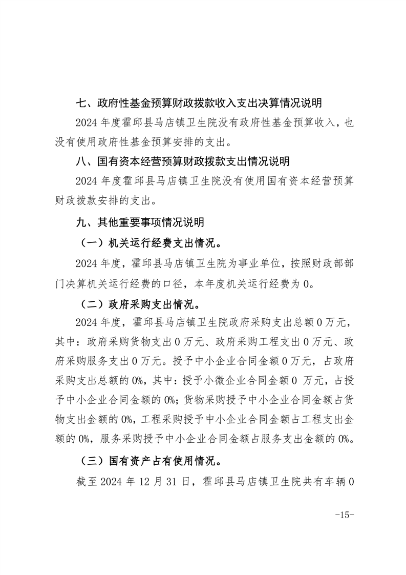 霍邱县马店镇卫生院2024年决算公开