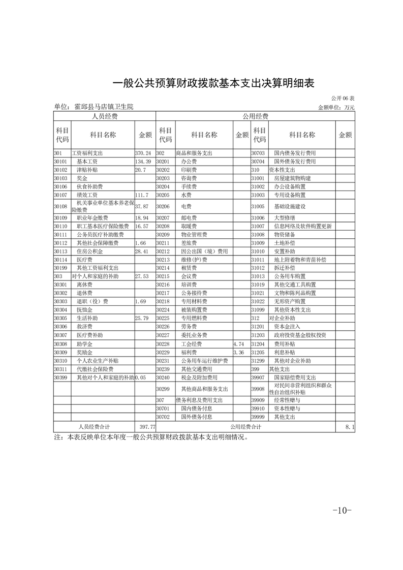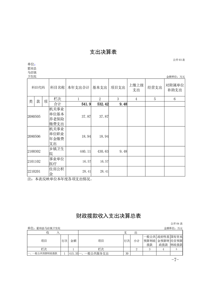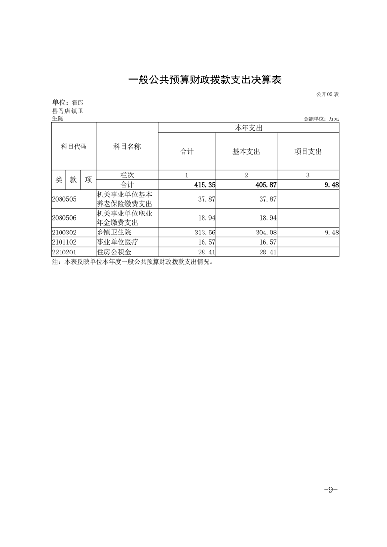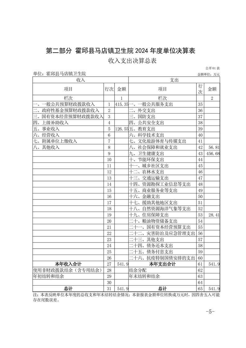 霍邱县马店镇卫生院2024年决算公开