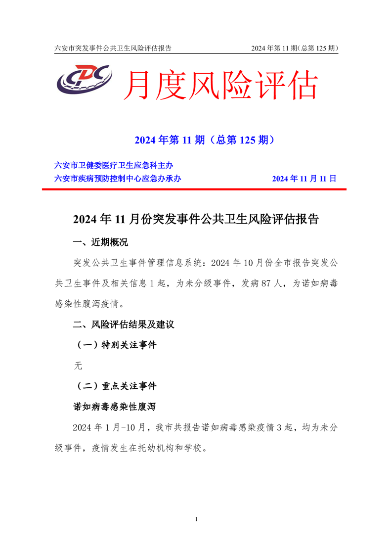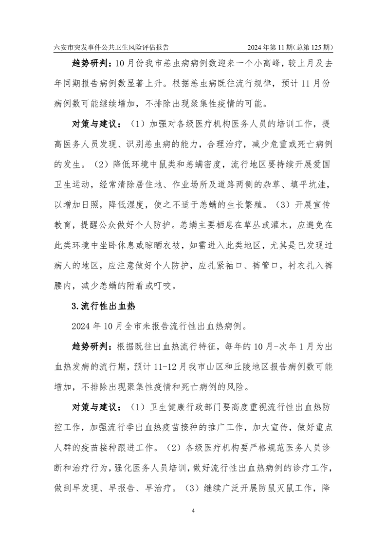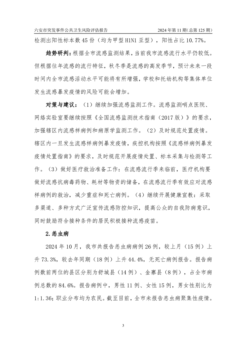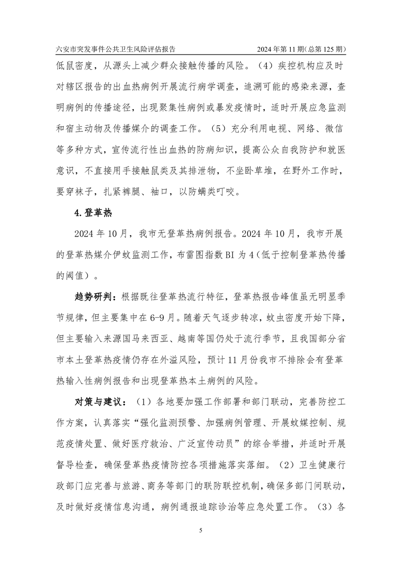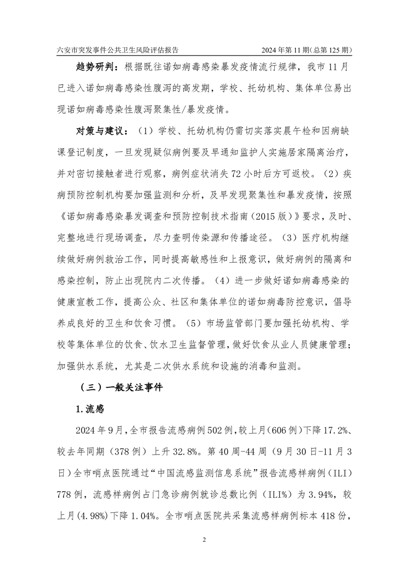 【预警信息】2024年11月份六安市突发公共卫生事件预警信息及对策建议