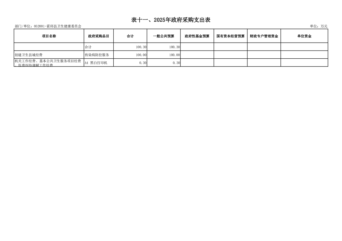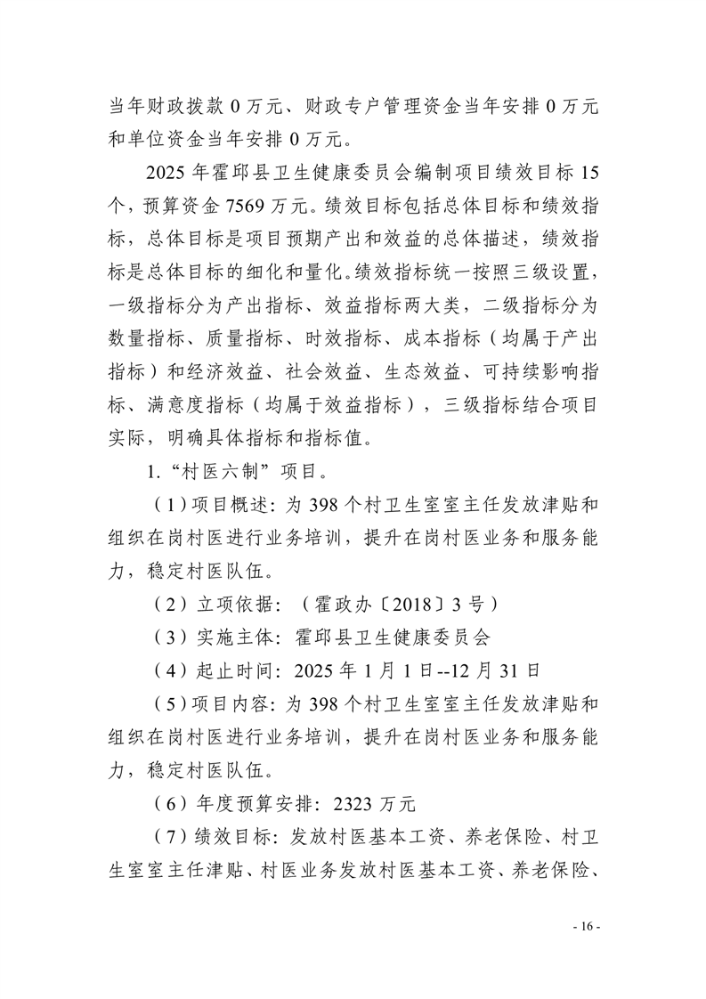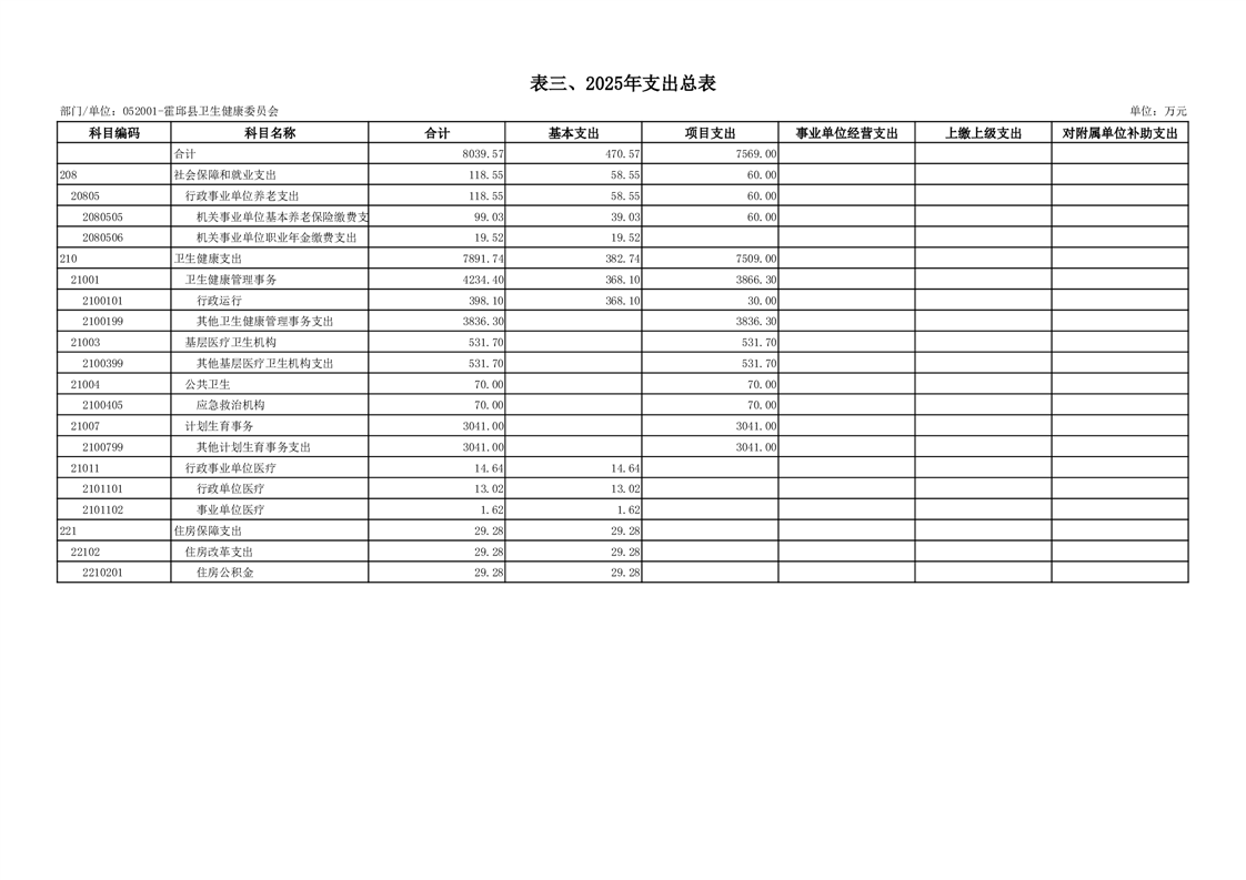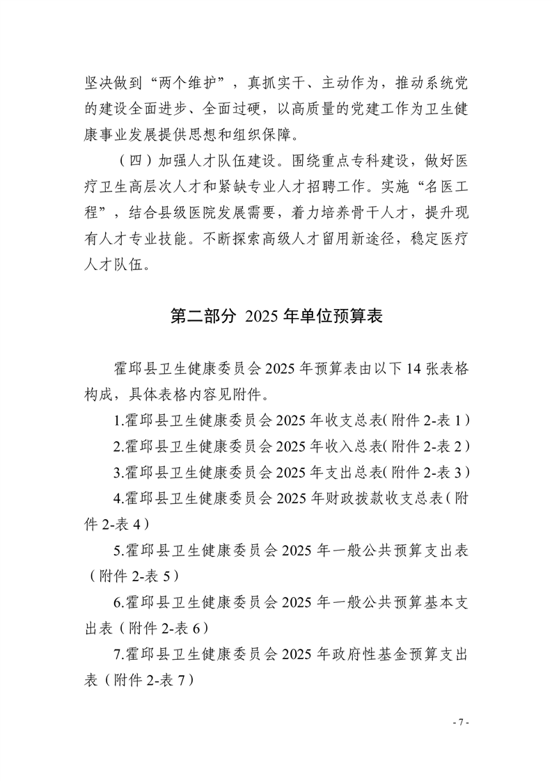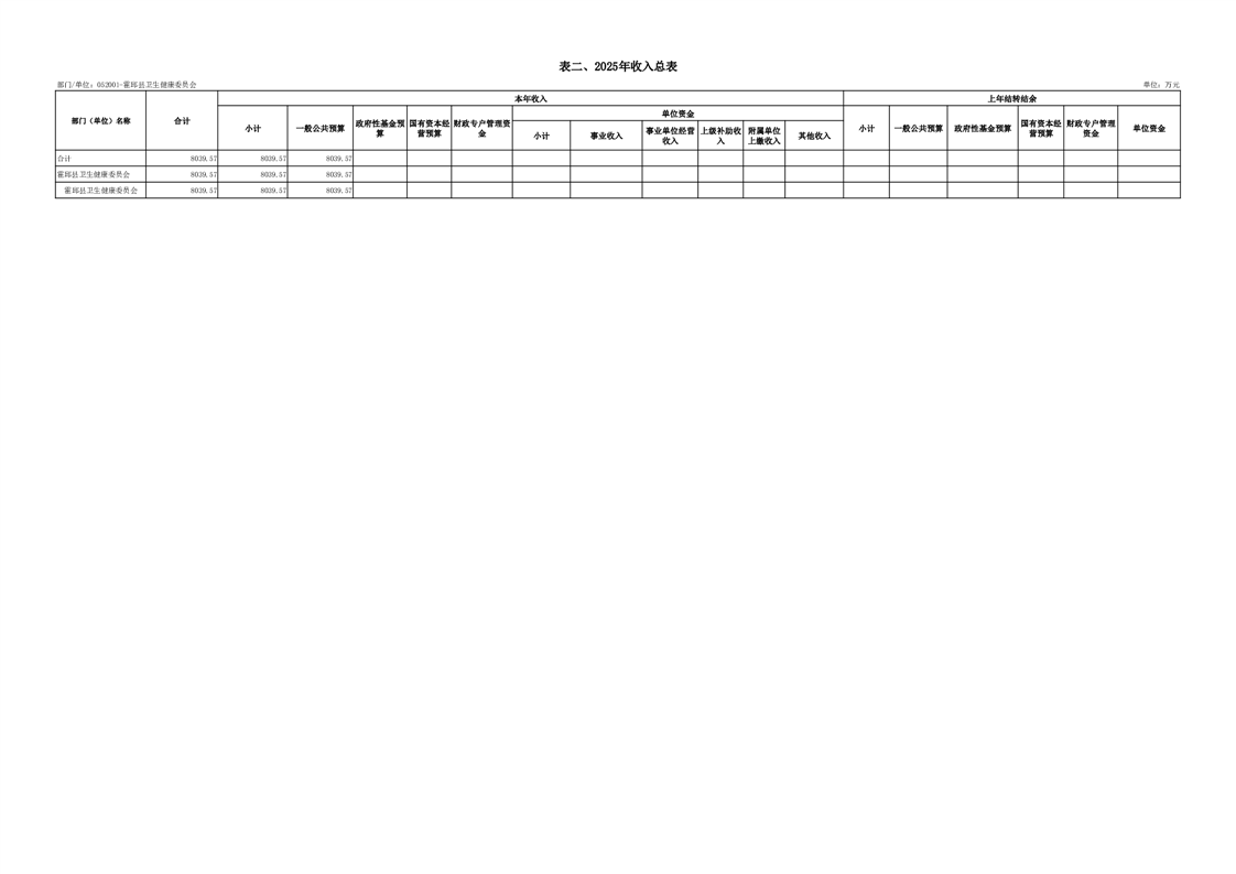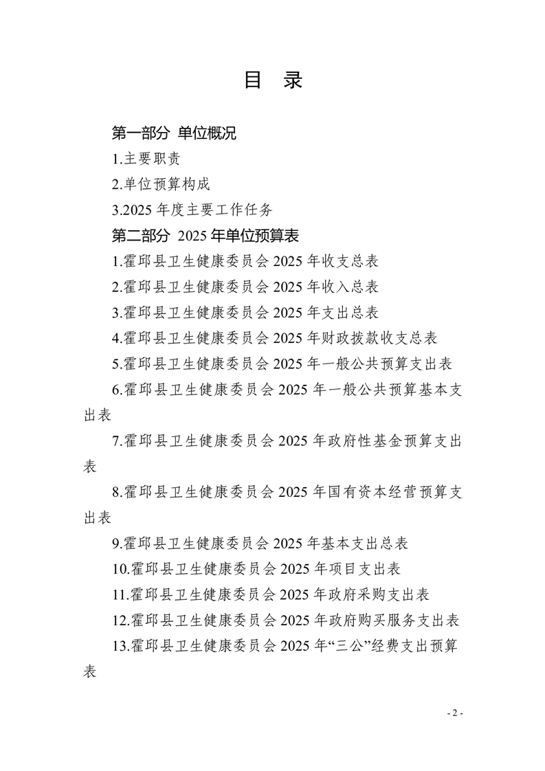 霍邱县卫生健康委员会2025年单位预算公开