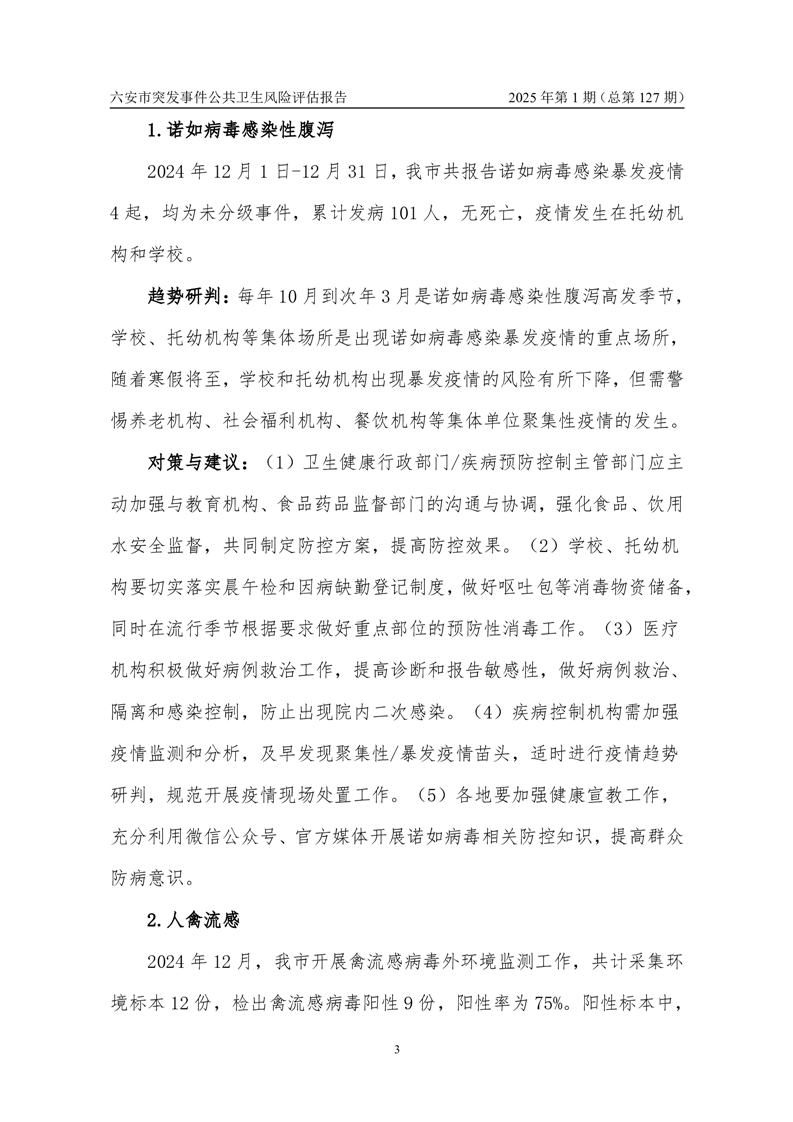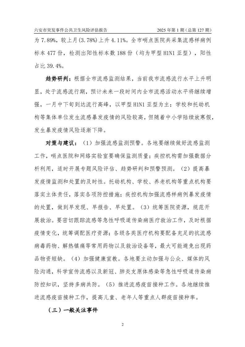 【预警信息】2025年1月份六安市突发公共卫生事件预警信息及对策建议