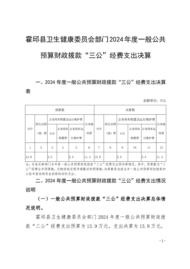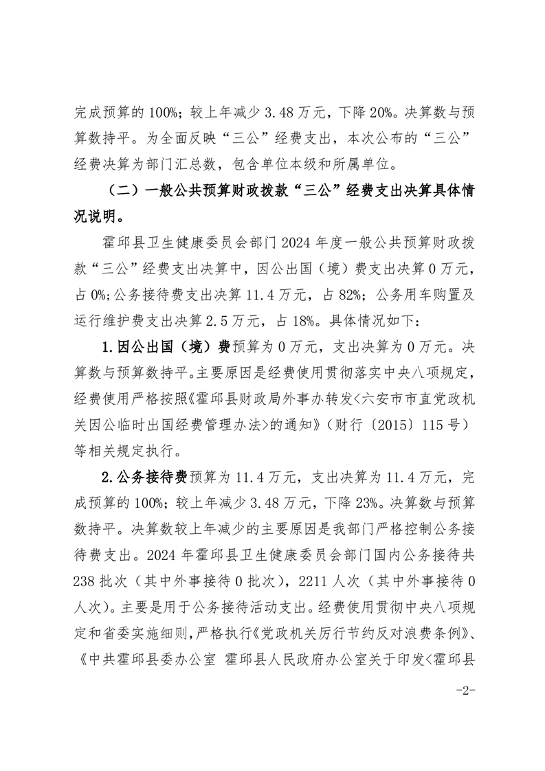 霍邱县卫生健康委员会2024年部门一般公共预算安排“三公”经费情况公开