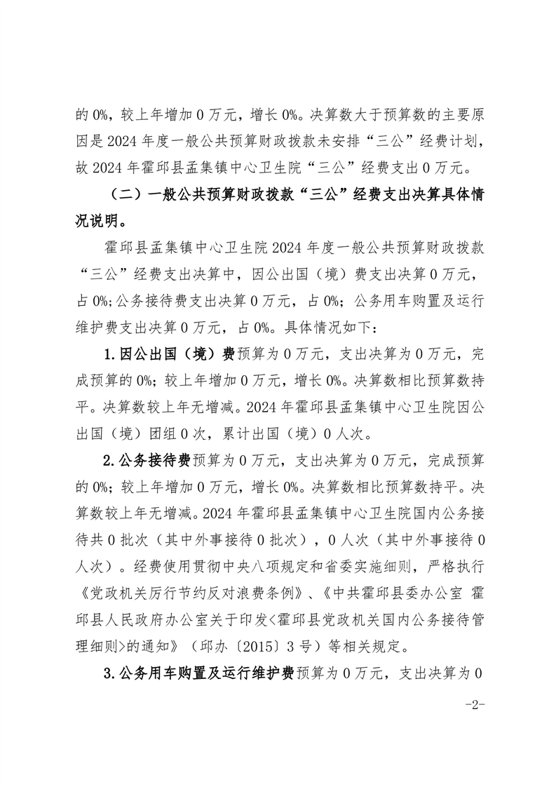 霍邱县孟集镇中心卫生院2024年度一般公共预算财政拨款“三公经费”支出决算