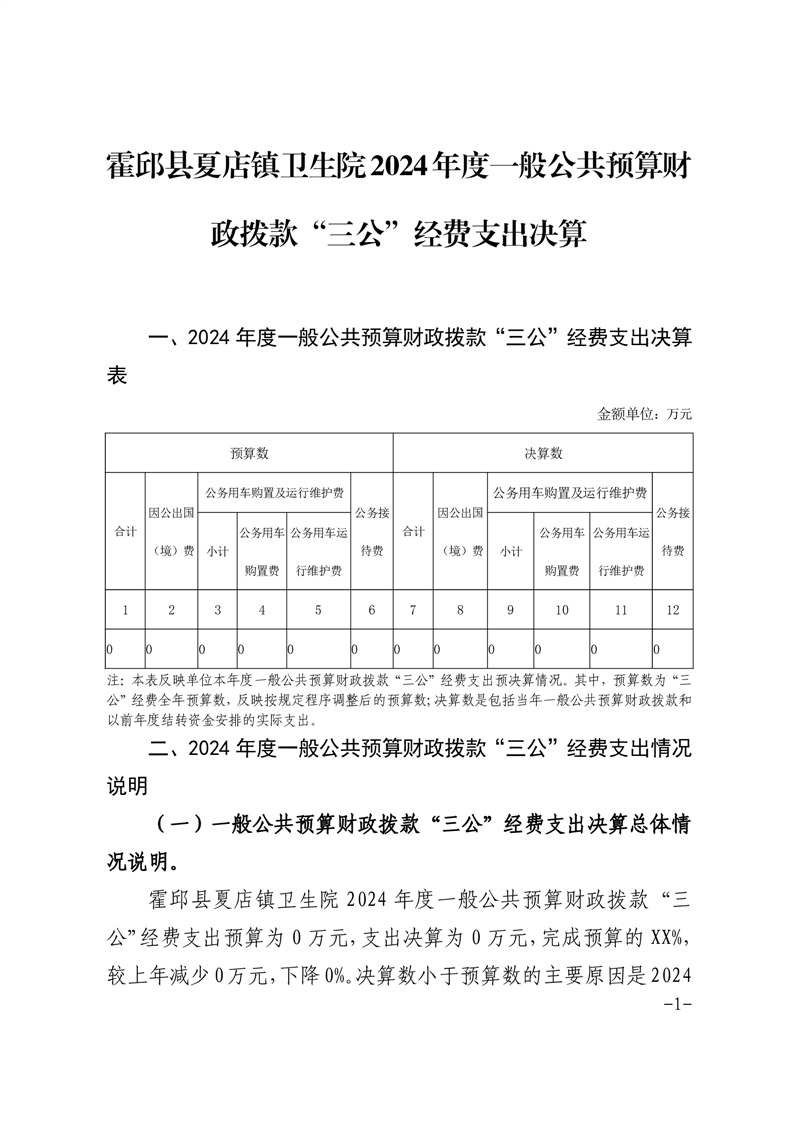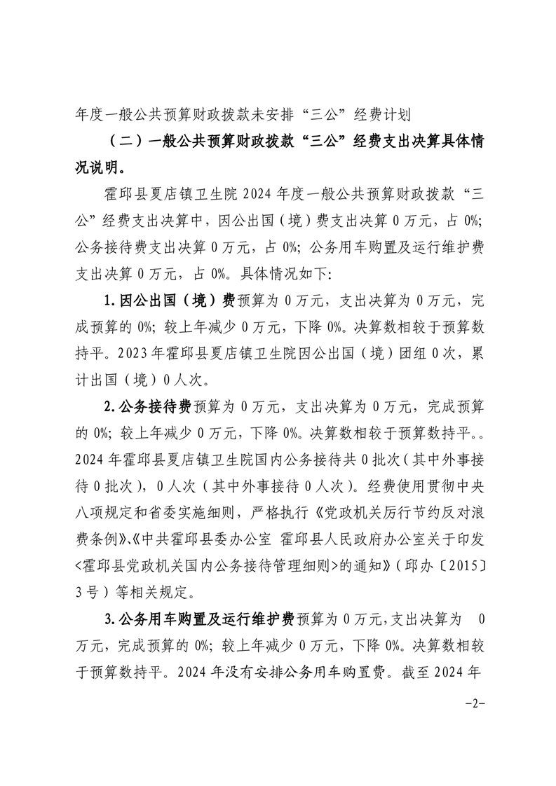 霍邱县夏店镇卫生院2024年度一般公共预算财政拨款“三公经费”支出决算