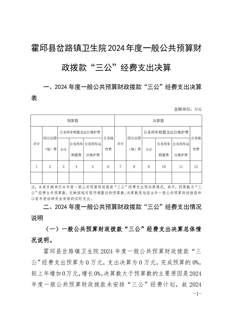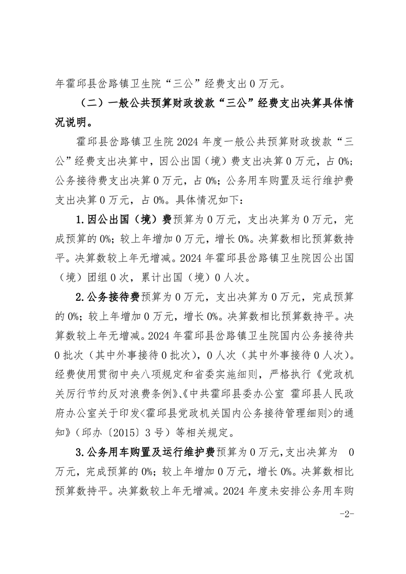 霍邱县岔路镇卫生院2024年度一般公共预算财政拨款“三公经费”支出决算