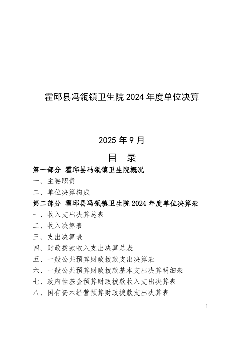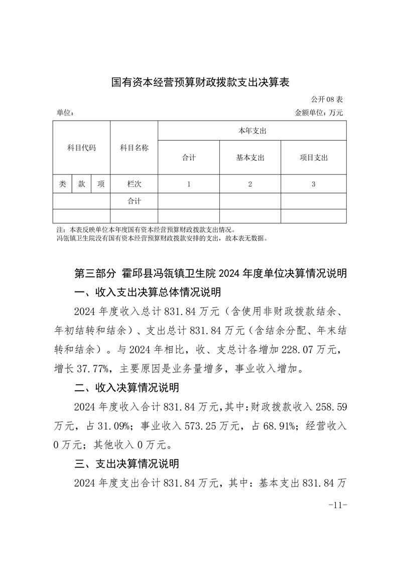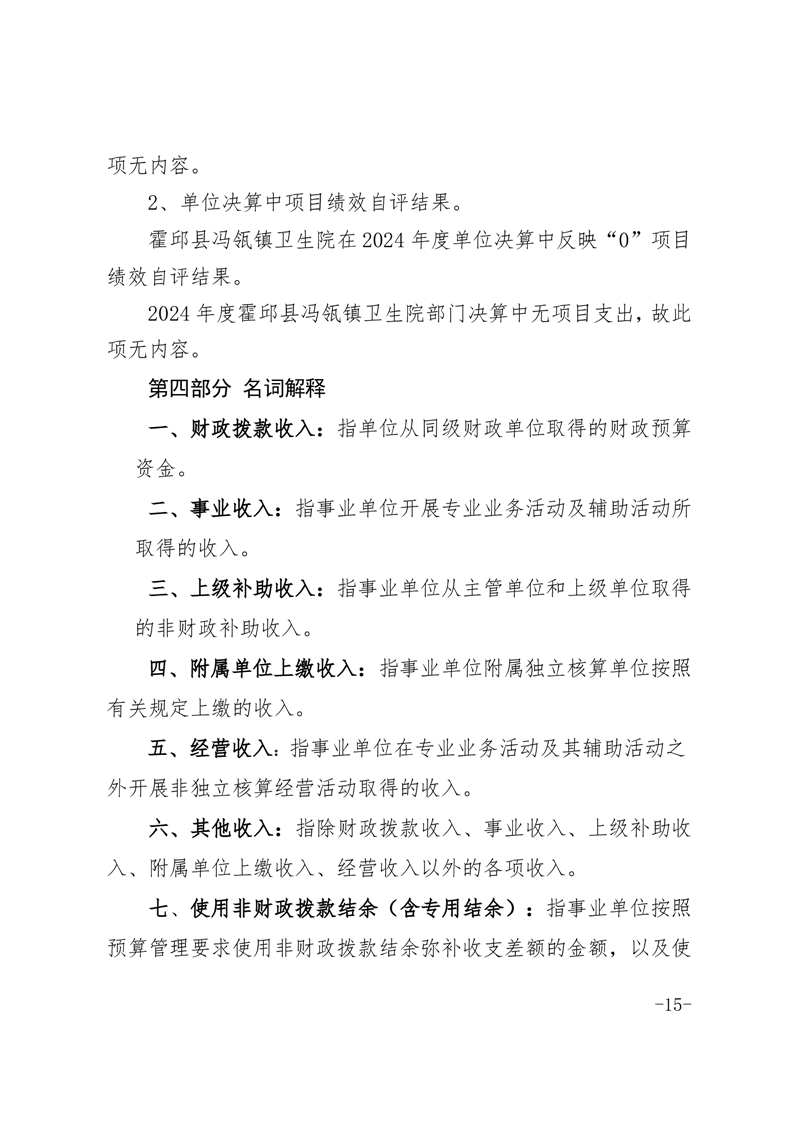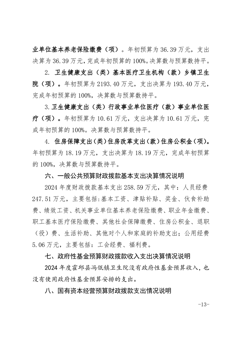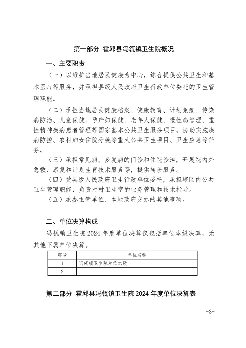 霍邱县冯瓴镇卫生院2024年单位决算公开