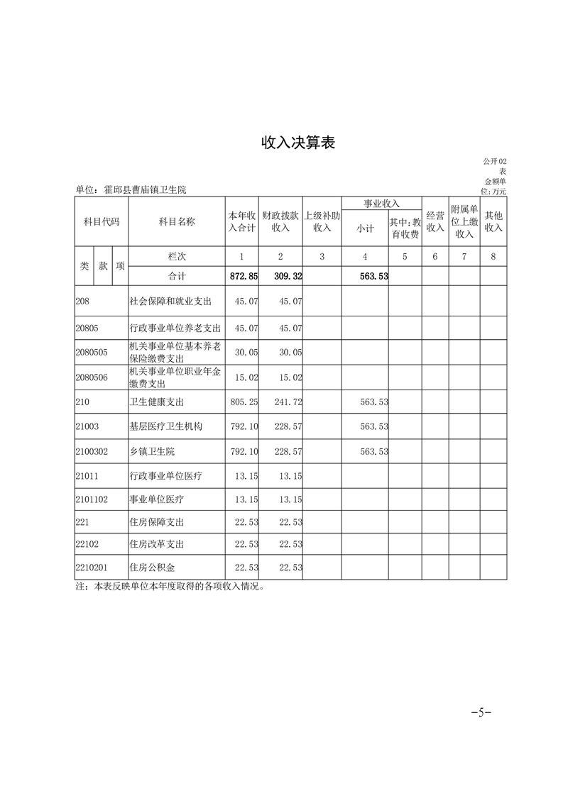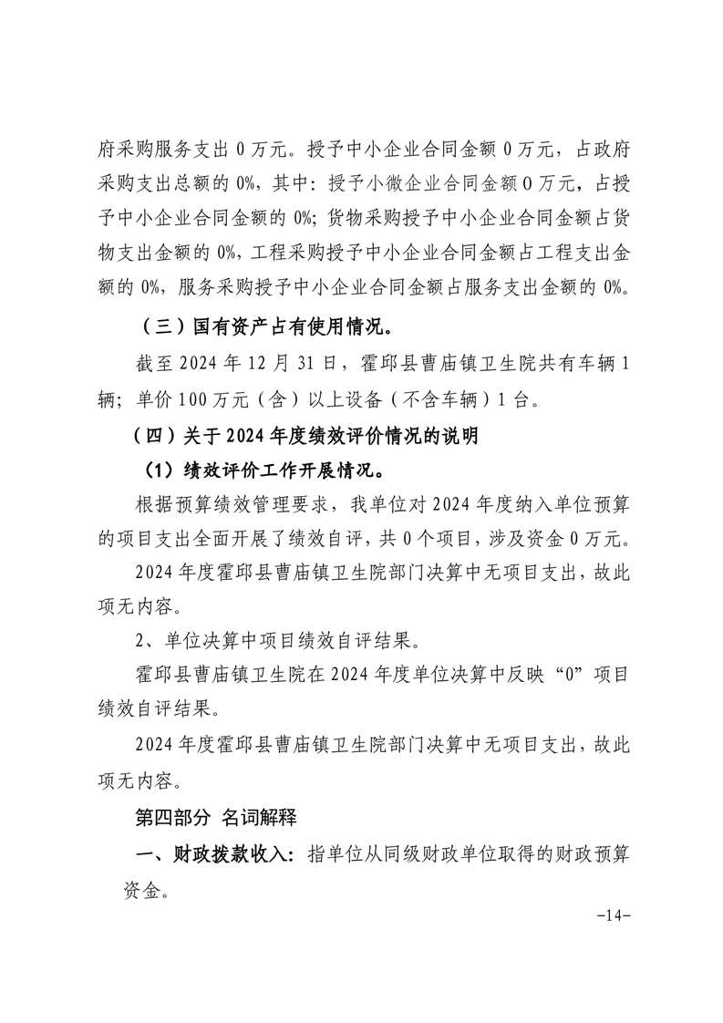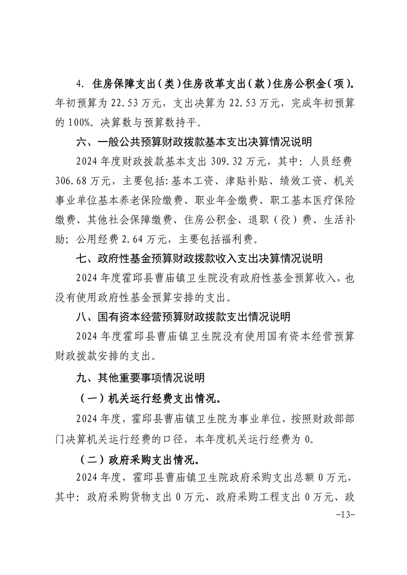 霍邱县曹庙镇卫生院2024年单位决算公开