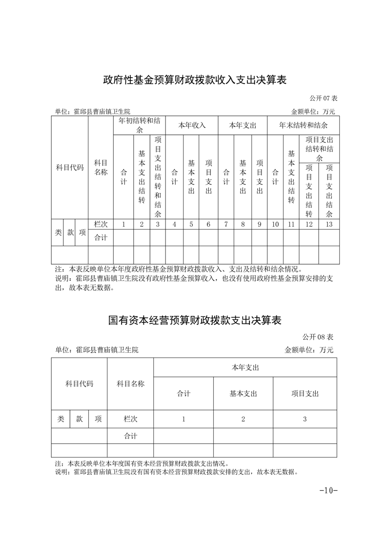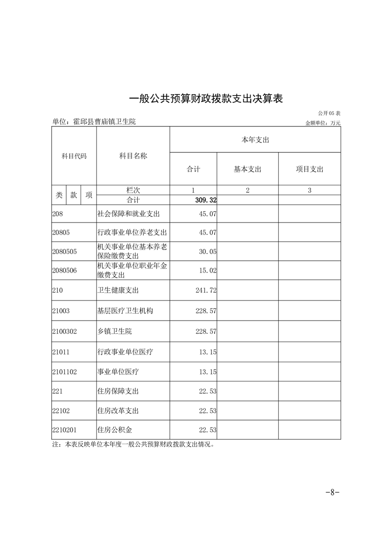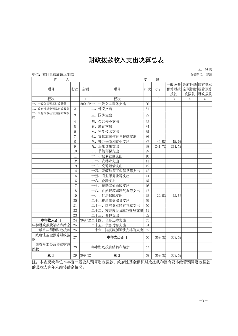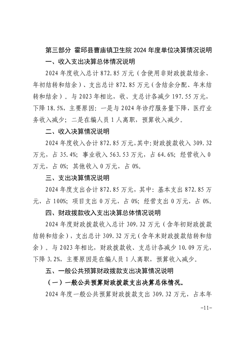 霍邱县曹庙镇卫生院2024年单位决算公开