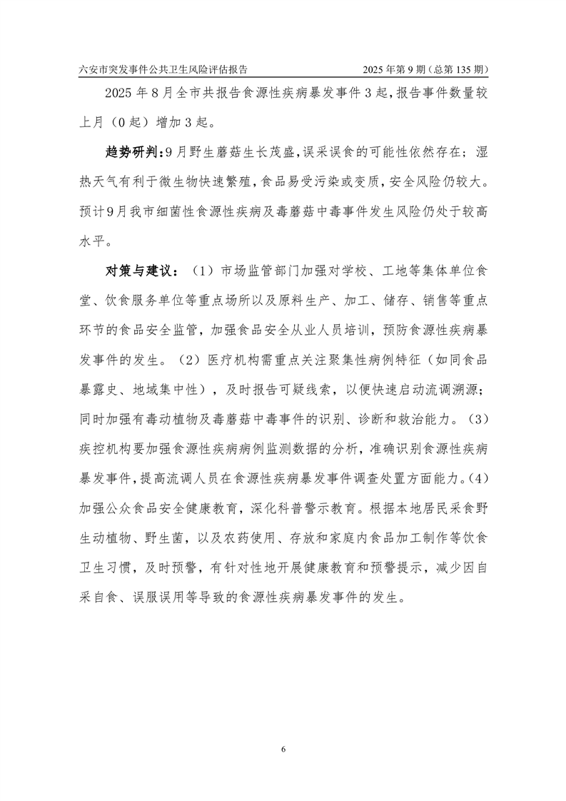 【预警信息】2025年9月份六安市突发公共卫生事件预警信息及对策建议