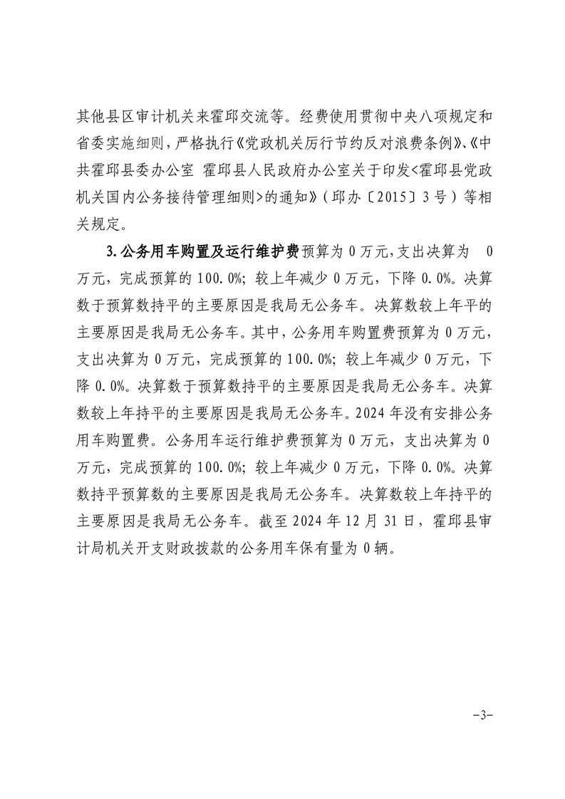 霍邱县审计局2024年度一般公共预算财政拨款“三公”经费支出决算